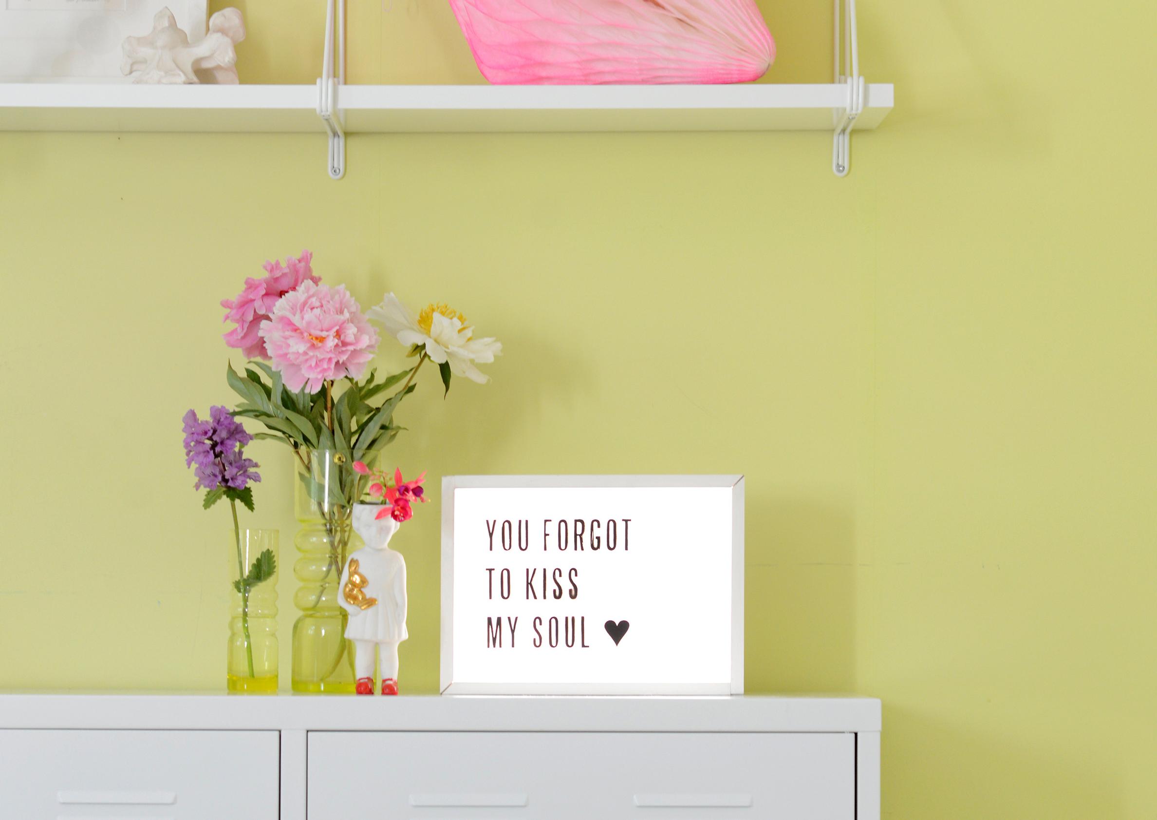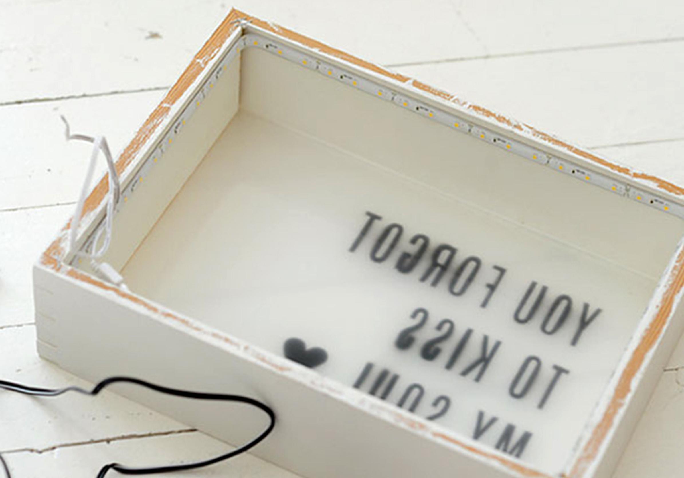 Valolaatikon esikuvana on hollantilaisessa Zilverblauw-blogissa nähty vintage-valolaatikko. Teksti on lainaus Tracey Eminin neontyöstä.