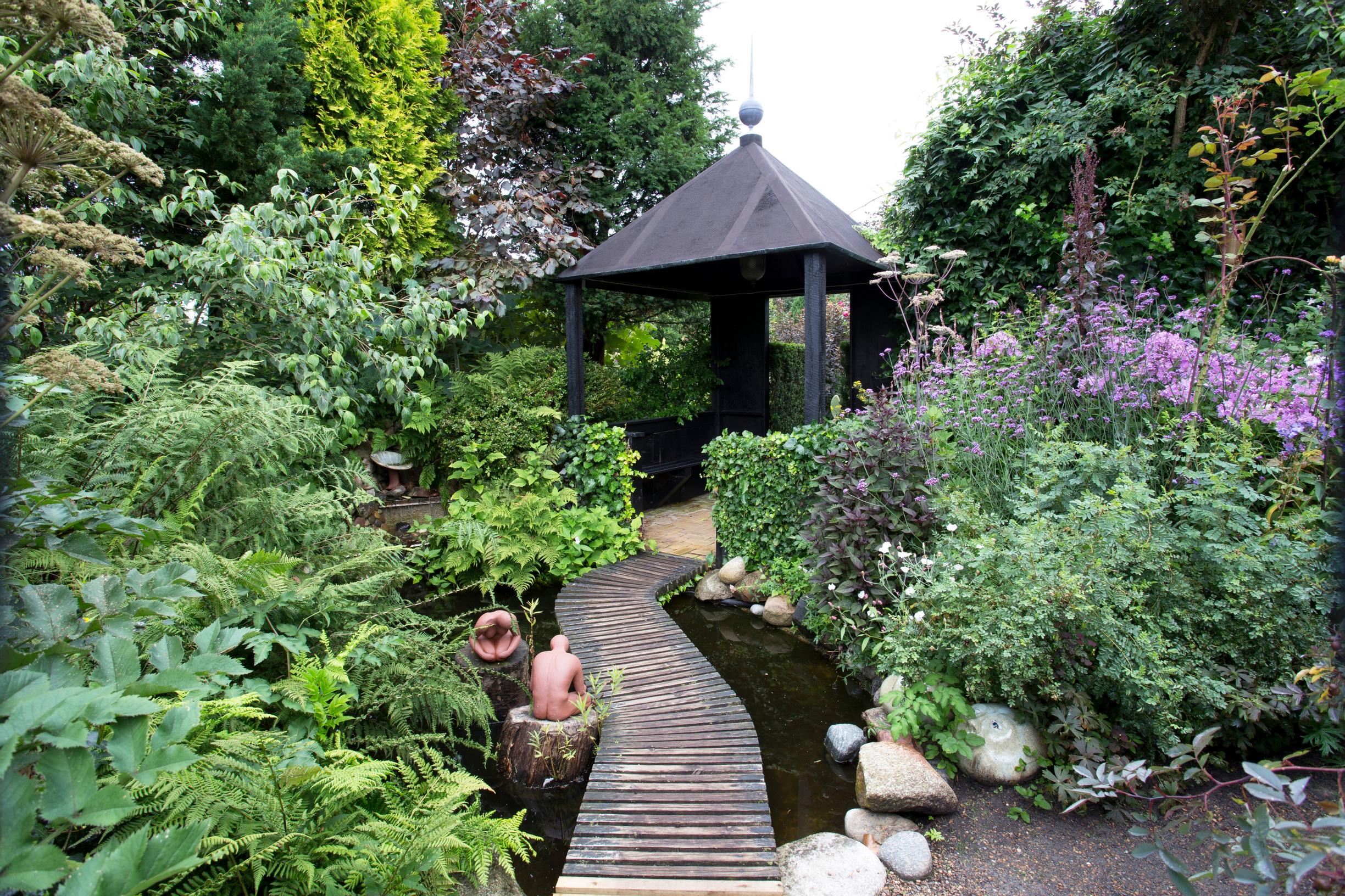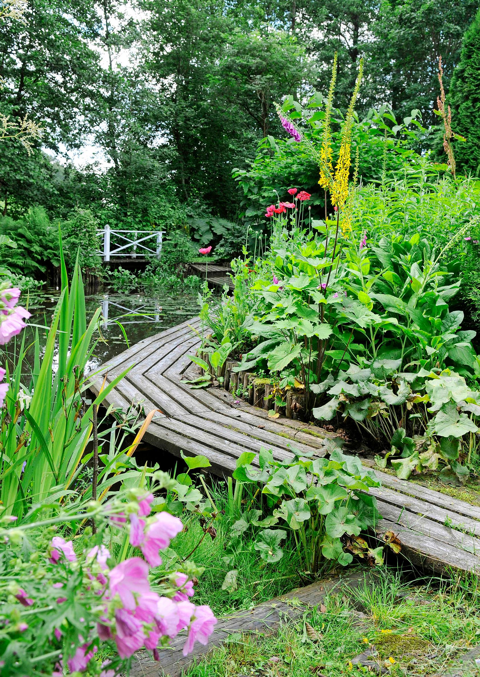 Olet onnekas, jos puutarhassasi on lammikko. Kostea rantavyöhyke voi kuitenkin ulottua vaikka kuinka pitkälle, ja kiertotie lammen toiselle rannalle muodostua liian pitkäksi. Ratkaisu löytyy jatkamalla laituria kulkuväyläksi. Muhevassa pienilmastossa kukoistavat muun muassa nauhukset, unikot ja sormustinkukat.