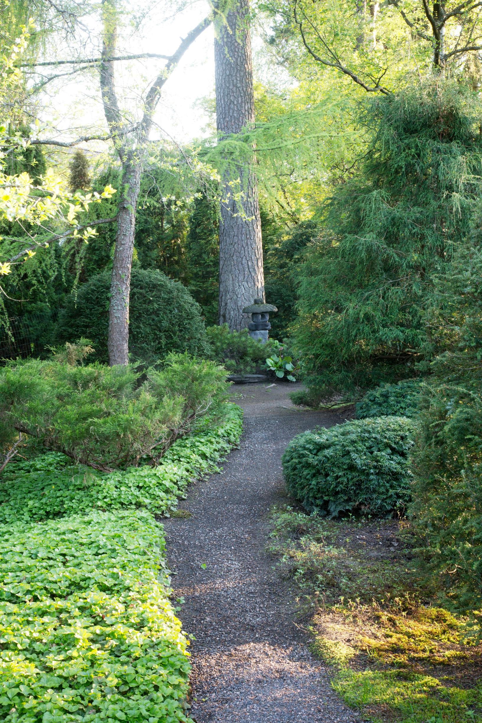 Polku voi kutsua kiemurrellen salaperäiselle seikkailulle tai paljastaa jo kaukaa päämäärän, jota kohti kuljetaan. Tämän polun päässä kiintopisteen tarjoaa majesteettinen mänty ja sen alla uteliaisuuden herättävä pieni temppeli. Simppeli hiekkakäytävä on luonnollinen valinta metsäiseen puutarhaan. Polun varrelle on luotu muotoja, jotka pysyvät kiinnostavina ympäri vuoden.