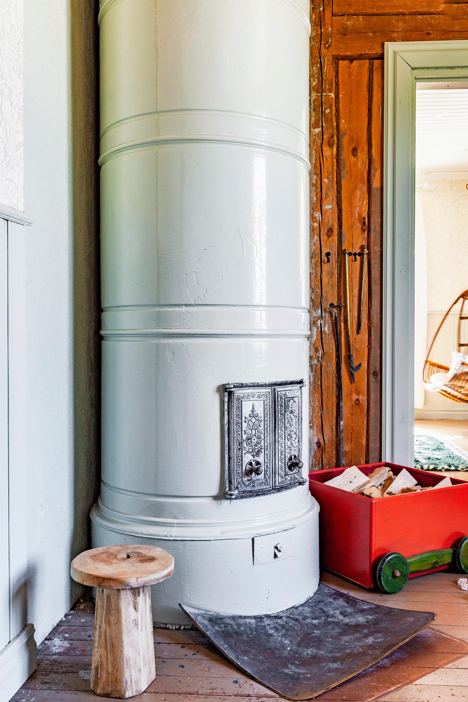 Kaupunginjohtaja Petra Themanin Raaseporin-kodissa on monta pönttöuunia, jotka antavat huoneisiin miellyttävää, lempeää lämpöä. Klapit kulkevat pyörällisessä laatikossa.