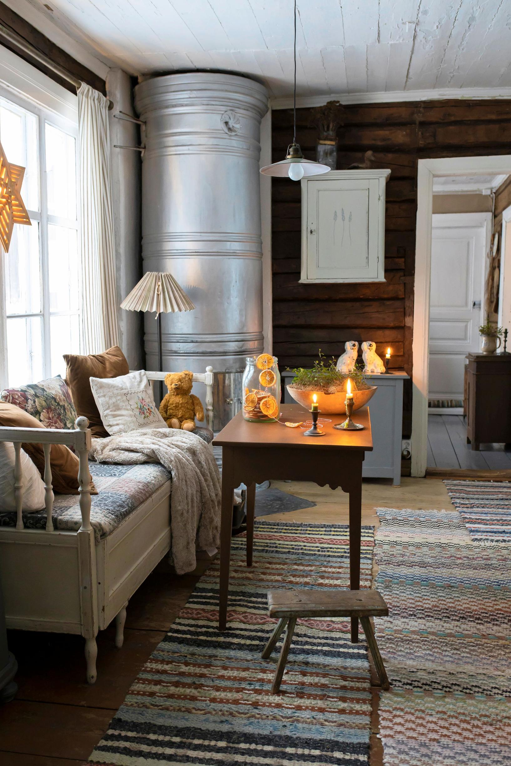 Räsymatot, hirsiseinät, pönttöuuni ja tilkkutäkkimäisesti paikatut puulattiat! Tunnelmallisessa, 200-vuotiaassa Vallgårdissa eletään jouluna kiireetöntä aikaa. Talon kahta pönttöuunia lämmitetään päivittäin.