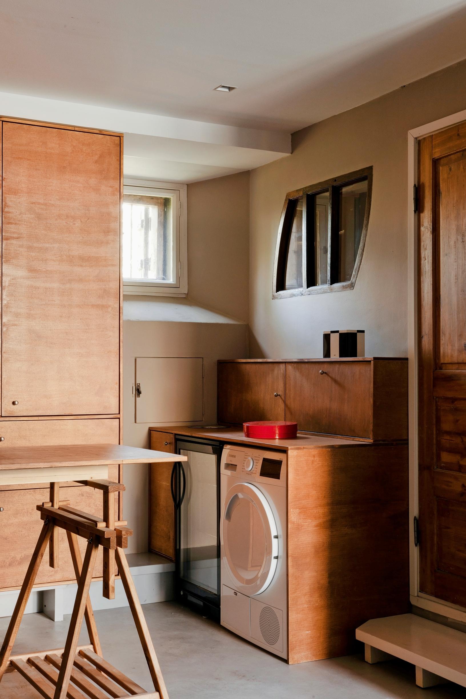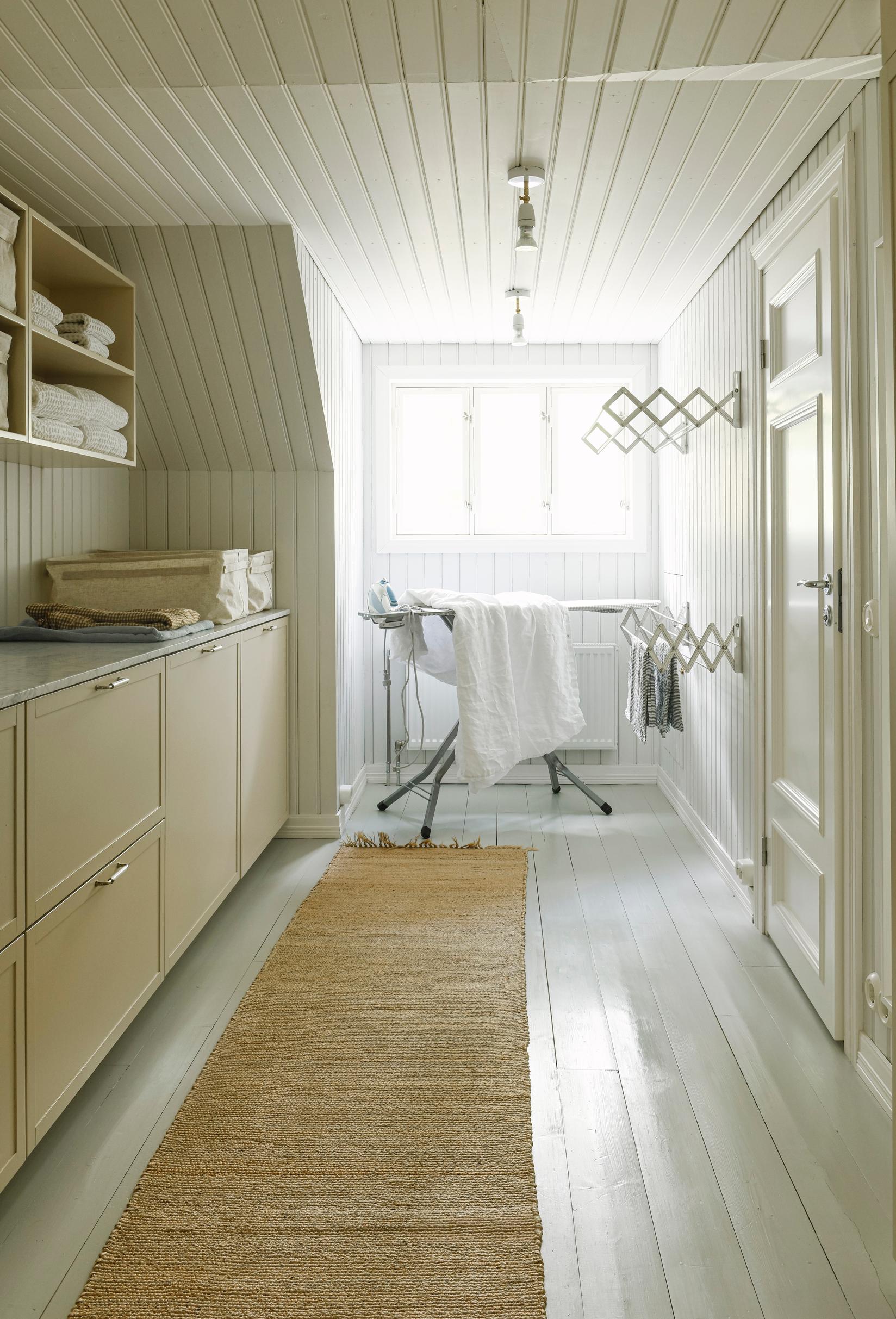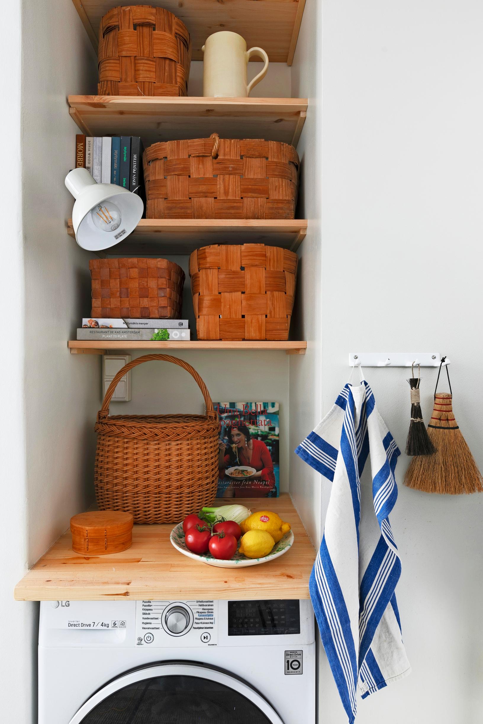 Pyykkipiste voi mahtua myös keittiön tai kylppärin nurkkaan. Nappaa kotien parhaat ideat kauniisiin kodinhoitotiloihin!