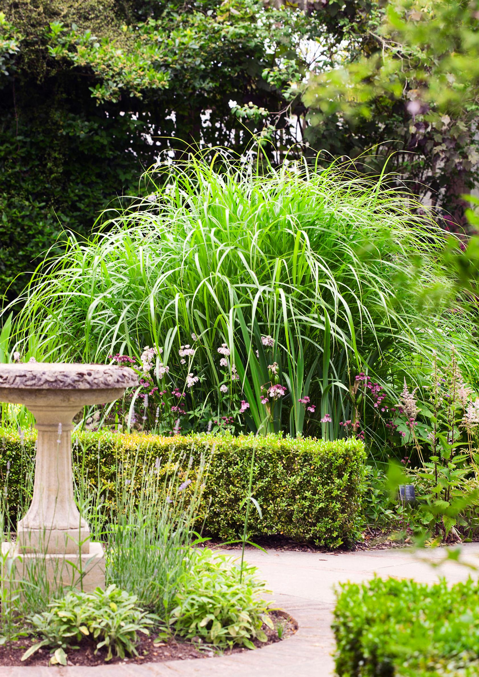 Muhkeat heinät ovat puutarhan monikäyttöisiä kasveja. Ne sopivat yksittäispensaaksi tai perennaryhmän rauhoittavaksi taustakasviksi. Takuuvarma keino pysäyttää katseet on sijoittaa muhkea elefanttiheinä käytävän päähän. Lähes kaksimetriseksi kasvava heinä toimii myös hyvänä näkösuojana ja tilanjakajana. Muotoon leikattu pensasaita luo hienon kontrastin rönsyävälle heinälle. Matalat pensasaidat ohjaavat kulkua puutarhan sisällä. Ne peittävät kasvit juuri sen verran, että katsoja joutuu kurottelemaan aidan taakse.