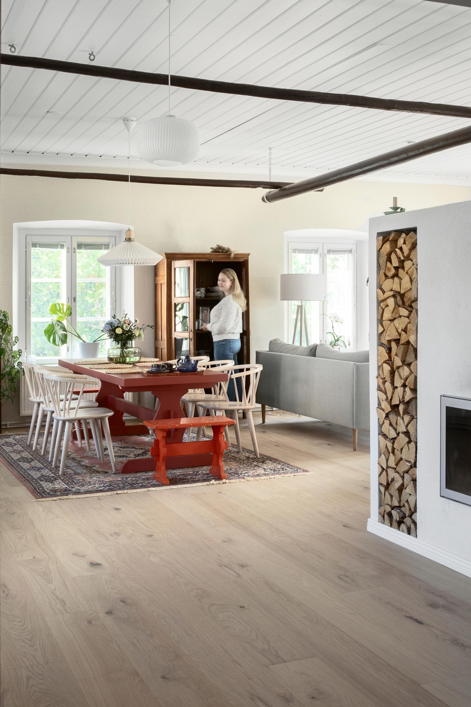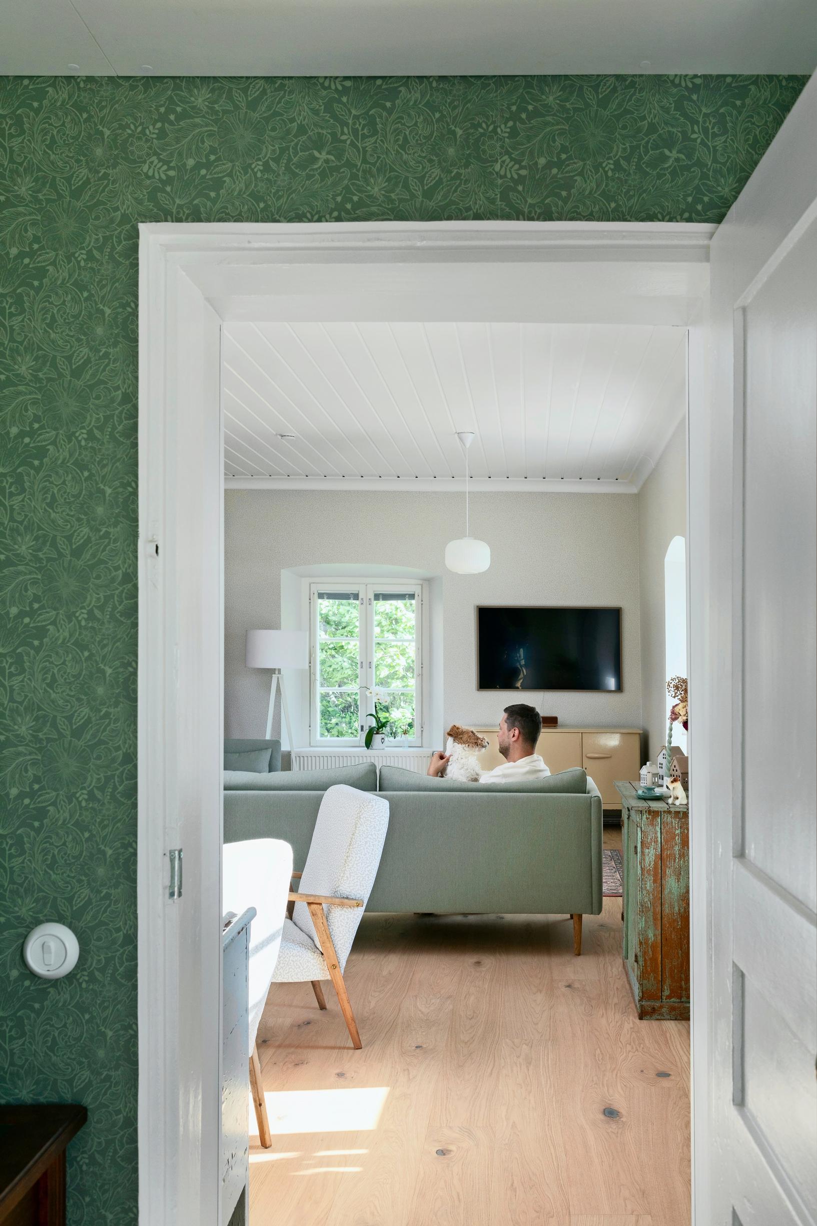 ”Pojat olivat sopineet, että se, joka ensiksi löytää puolison, jää asumaan sukutaloon”, Tiia kertoo ja hymyilee. Hymyyn on montakin aihetta: ennestään kolmihenkiseen perheeseen on juuri syntynyt kaksoset. Myös pari vuotta kestänyt remonttikoettelemus on onnellisesti ohi.