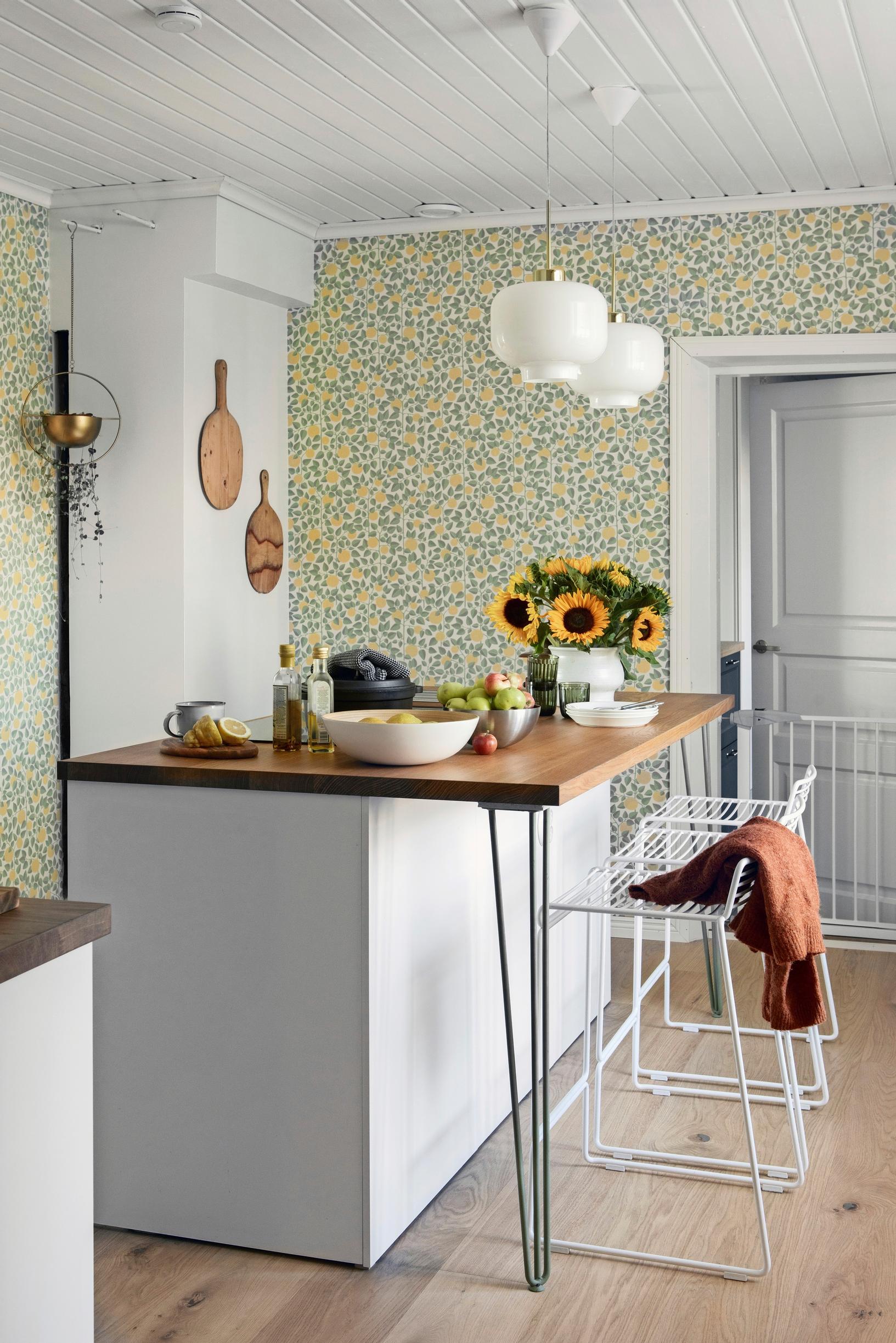 ”Haaveilin keittiön siirtämisestä, mutta se ei onnistunut kantavan seinän vuoksi”, Tiia sanoo.