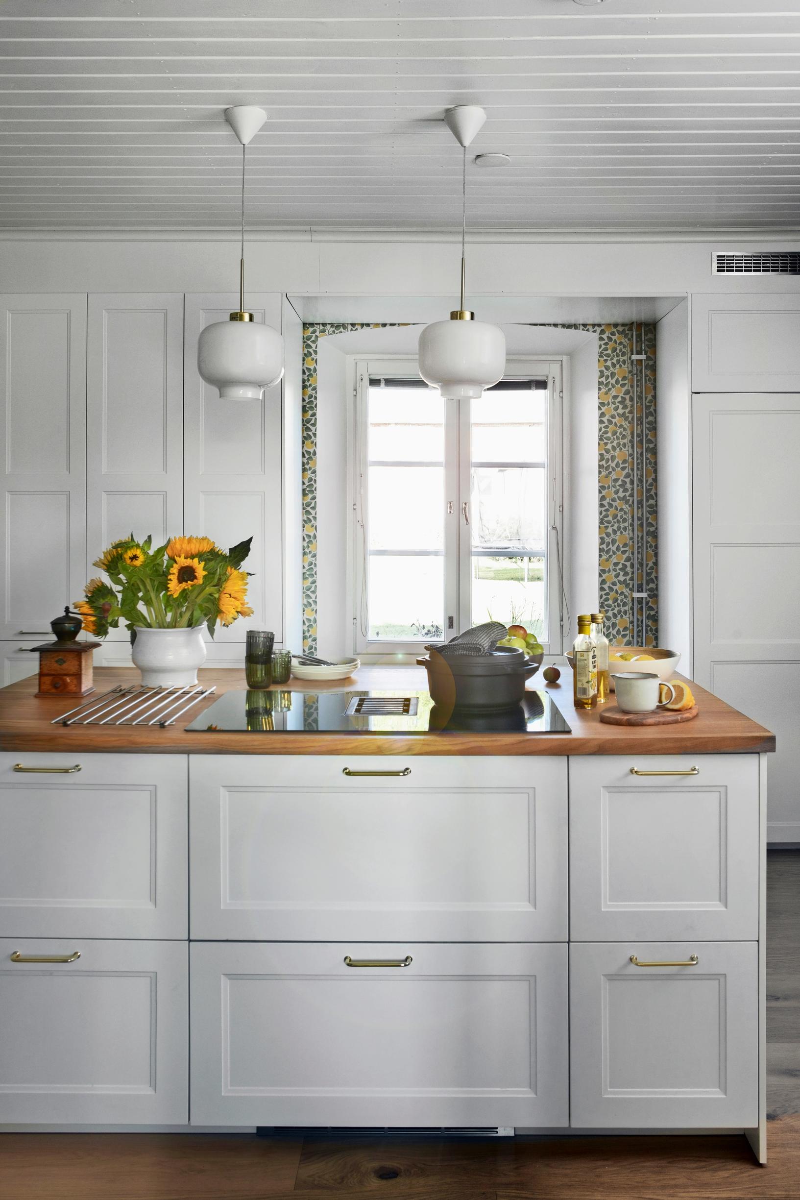Sen sijaan kotiin saatiin uusi keittiö vanhan tilalle. Ruokapöydän paikalla on nyt iso saareke, jonka äärestä näkee niin joelle kuin pihamaalle.