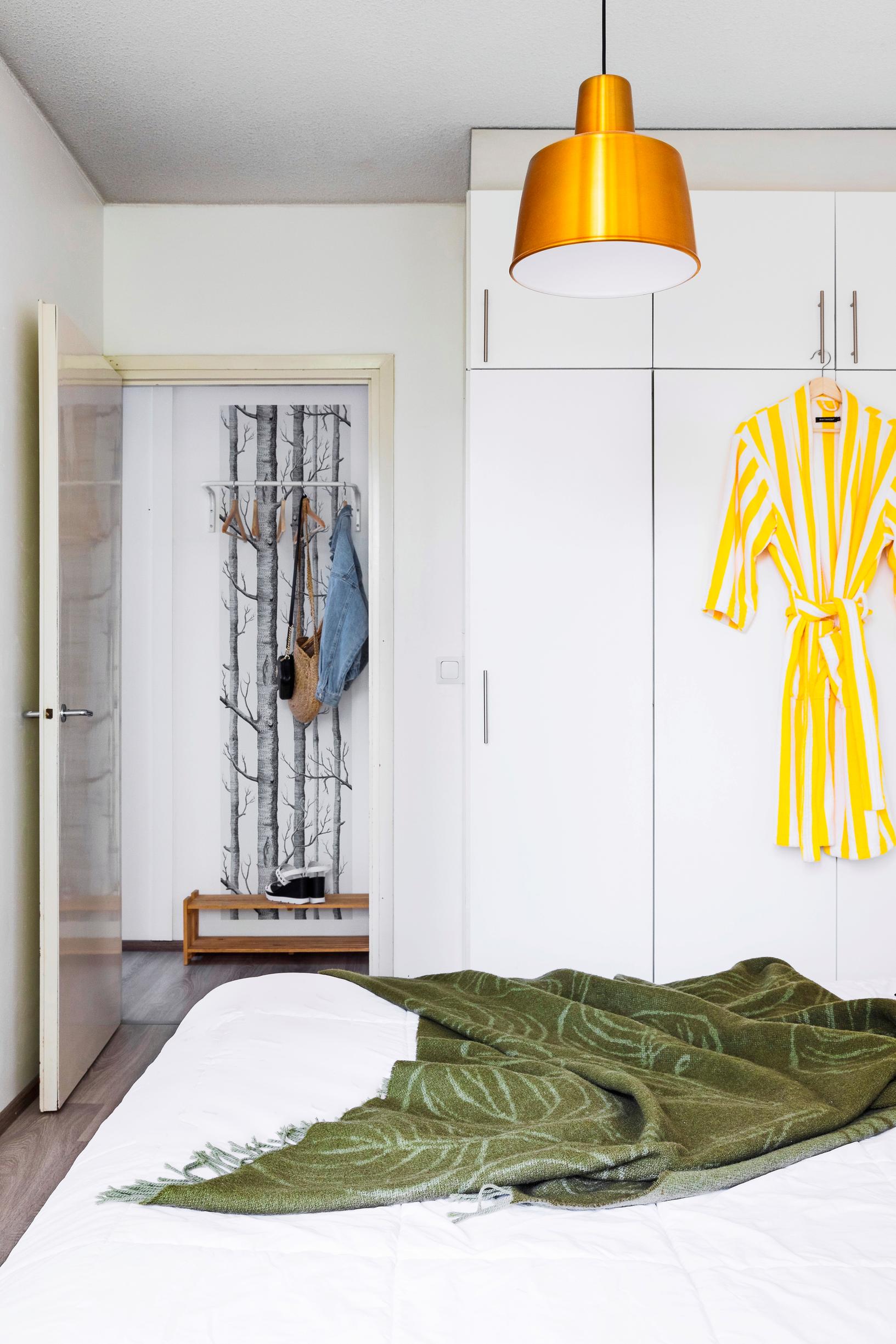 Muutin nykyiseen kotiini kolme vuotta sitten. Asunto oli täysin alkuperäisessä kunnossa. Lattiaa peitti vihreä muovimatto, seinät olivat keltaiset. Eteisen ovet ja makuuhuoneen kaapit oli maalattu tummanvihreiksi, ja vihreää oli sutaistu myös vaatehuoneen seiniin. Makkarissa oli kukertavan vaalea tapetti.