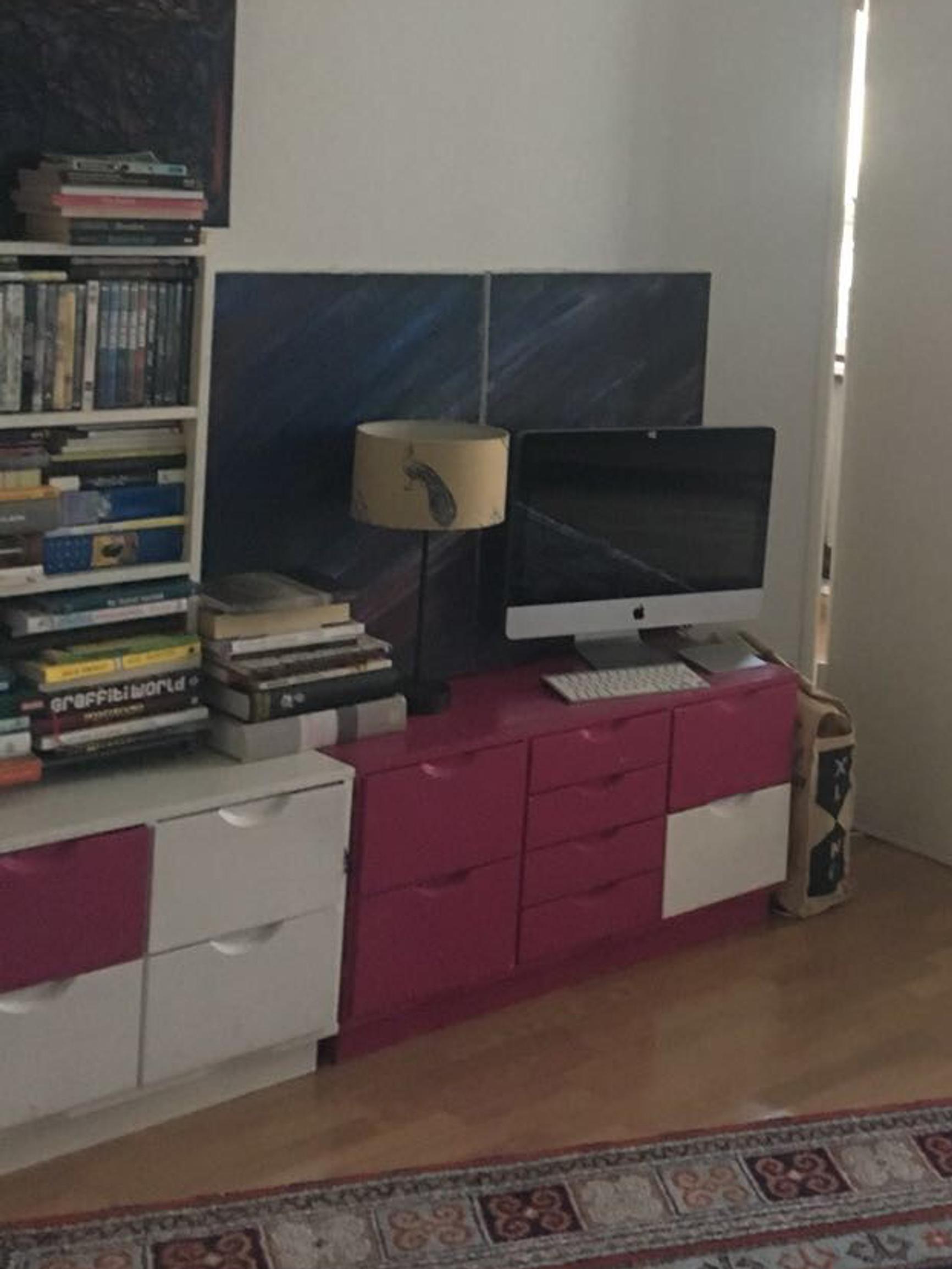 Kaksi vanhaa, maalattua mäntylipastoa hiottiin niin, että puupinta saatiin näkyviin. Lisäksi lipastot nostettiin uusille Lundian Fuuga-sarjan String-jaloille. Koska jalat on tarkoitettu toiselle kalustesarjalle, lipasto kiinnitettiin lisäksi kulmaraudoilla seinään.