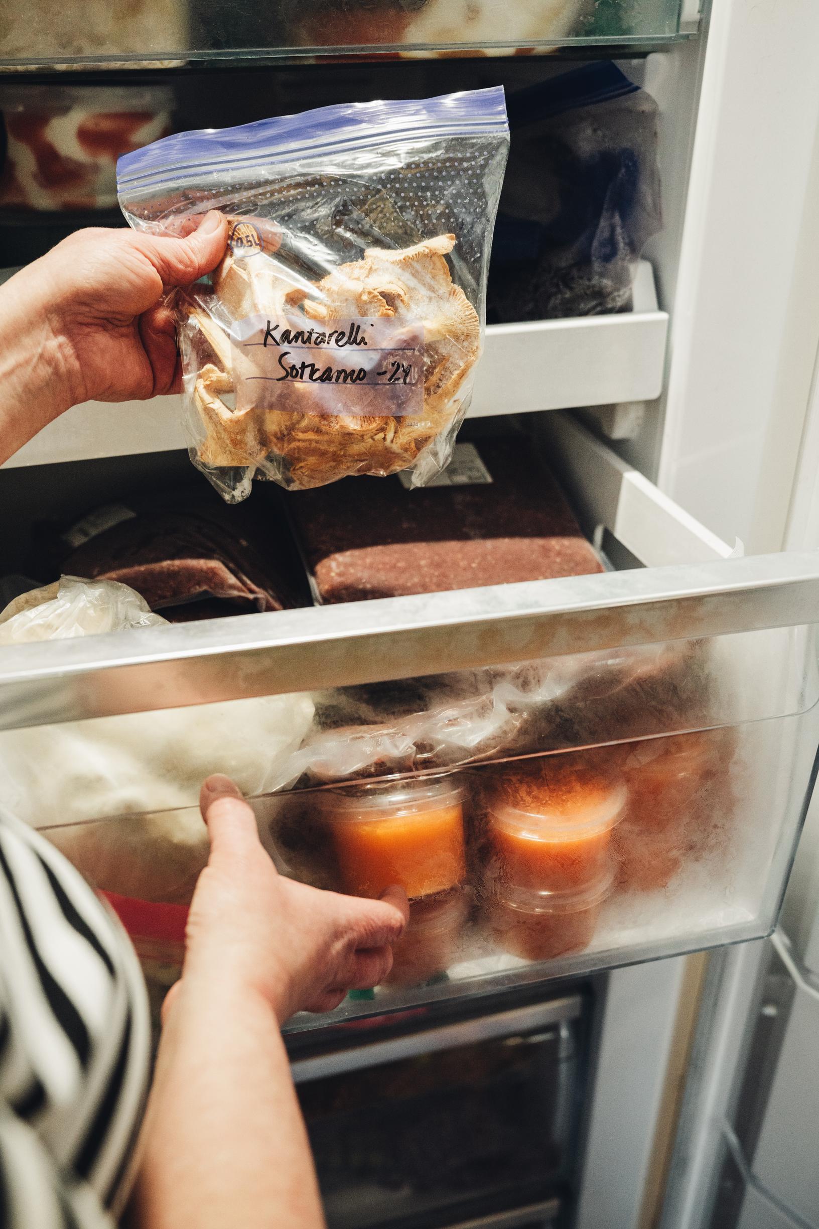 Syömme hyvin ja laadukkaista raaka-aineista valmistettua kotiruokaa. Pakastimesta löytyy poroa, herkkutatteja ja taimenta. Viime aikoina olemme kokanneet risottoa kolmesti peräkkäin, koska laitoimme mökin talvikuntoon ja toimme kotiin risotto- ja puuroriisiä. Pakastimesta löytyi parmesaania, ja hyödynsin ylijääneet possupihvit.