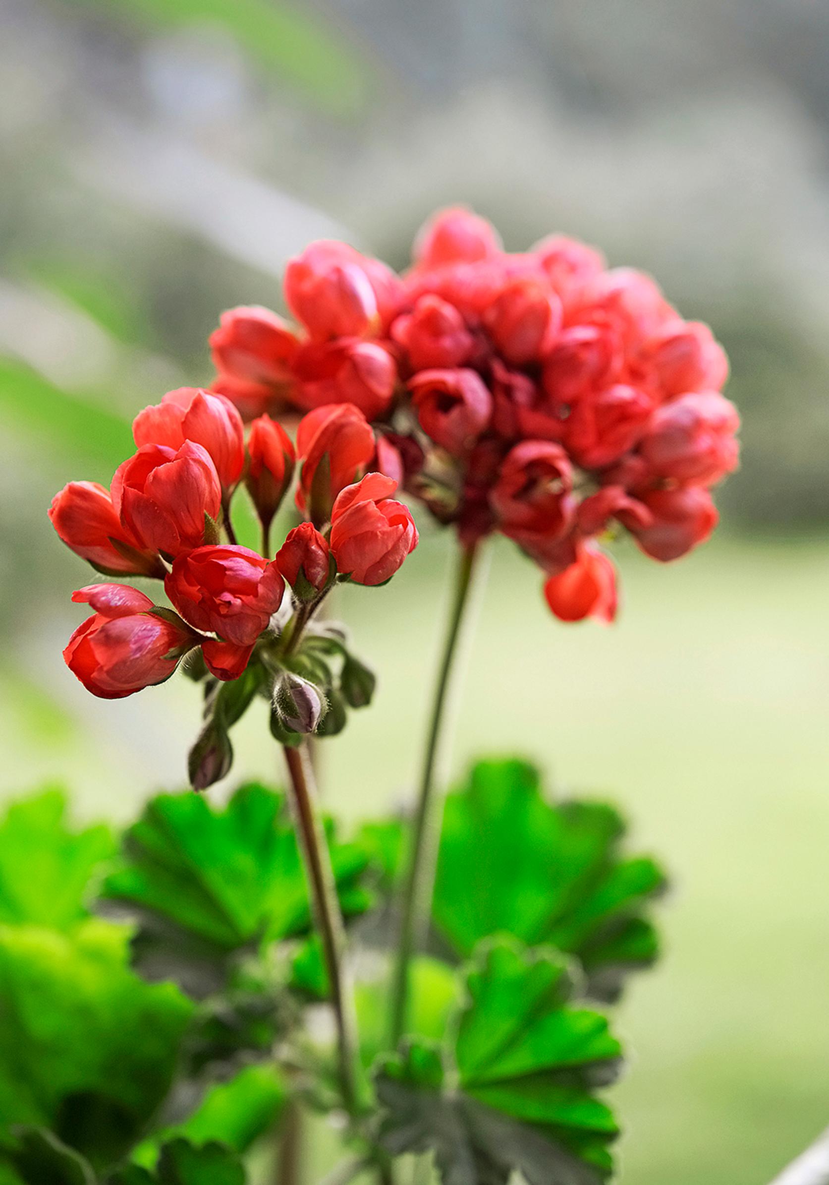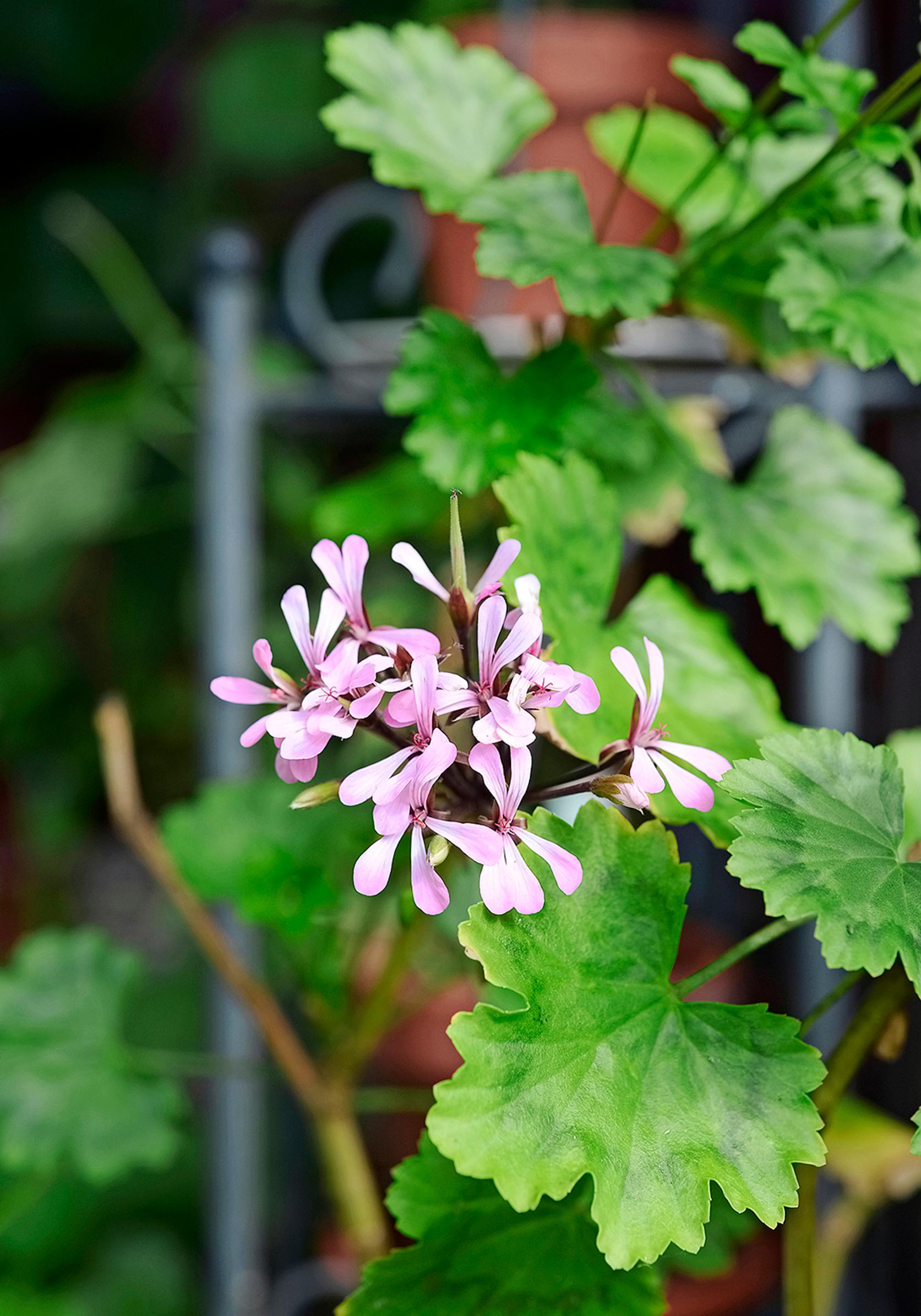 Klassinen ja kestävä pelargoni on monen viherpeukalon mieleen. Joidenkin lajikkeiden tuoksu houkuttelee paikalle kimalaisia ja perhosia.