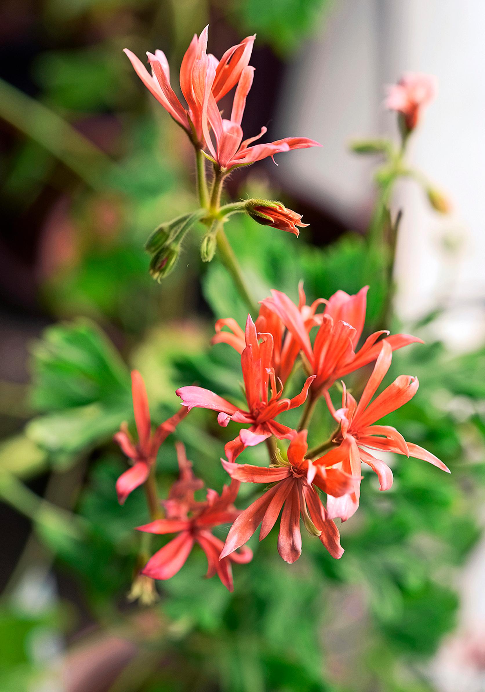 Tähtipelargonien terälehdet ovat usein kapeat ja liuskoittuneet.