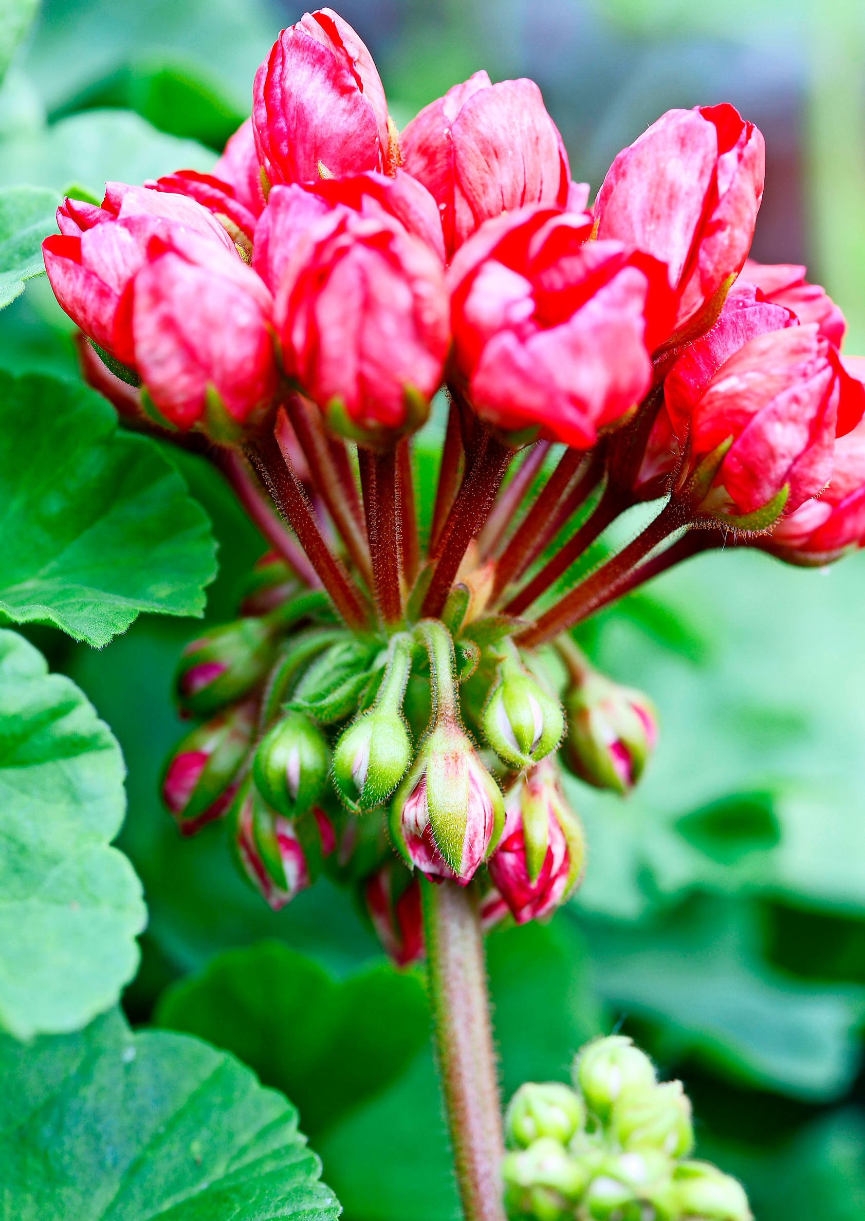 Karmiininpunainen ja suosittu ruusunnuppupelargoni talvehtii ongelmitta. Pistokaslisääminen on helppoa.