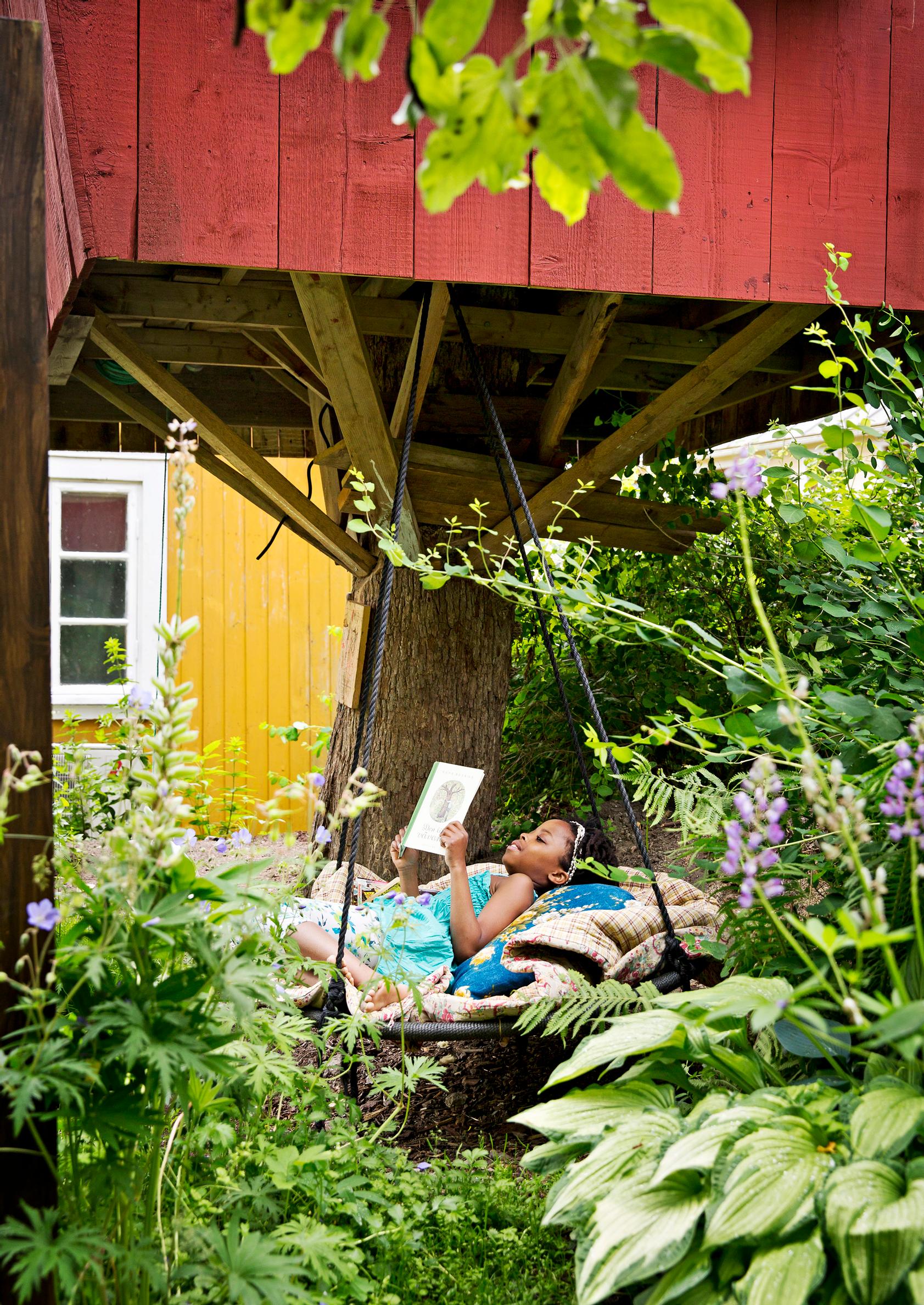 Ninetten, Niklaksen ja heidän kolmen lapsensa puutarha on täynnä ihastuttavia ideoita. Isolle pihalle mahtuu hyötytarha ja kasvihuone, mutta tilaa on myös lekotteluun. Ja sadepäivänä voi kiivetä huikeaan puumajaan!