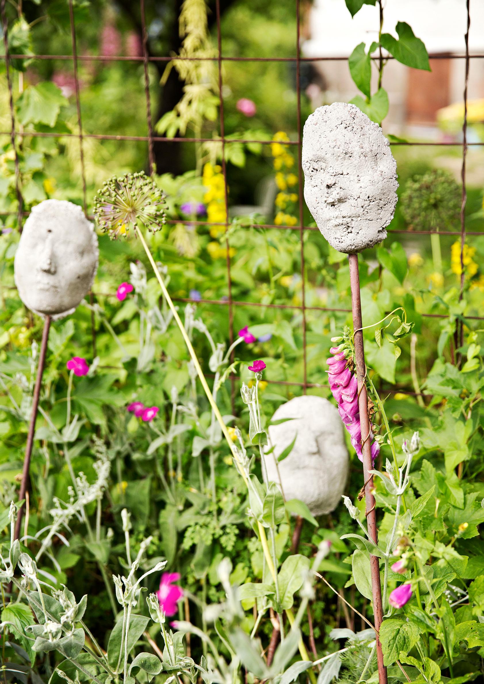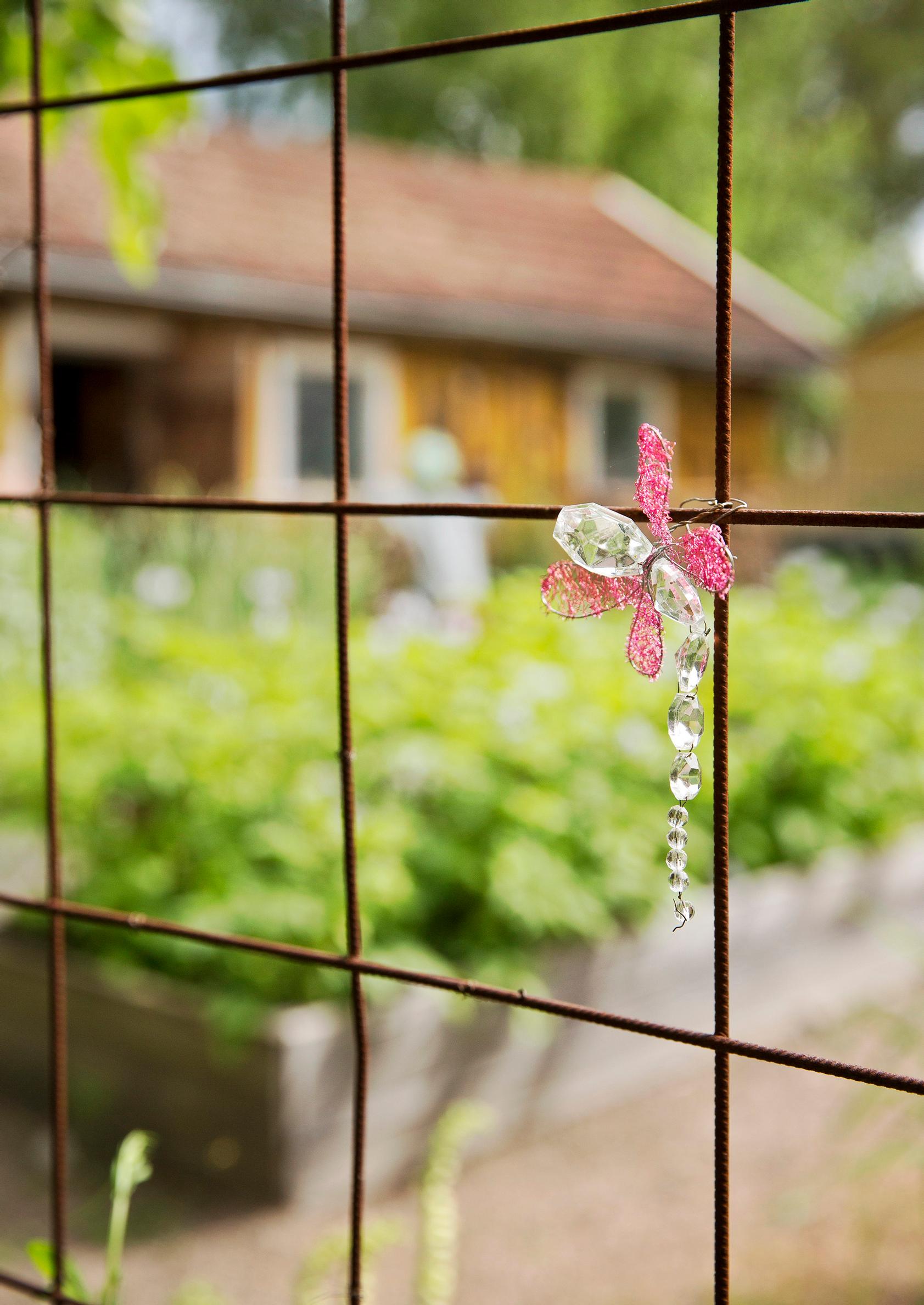Hän on ollut aina innokas askartelija ja boheemi taiteilijasielu. Pihalla on kaikenlaista, mitä taiteellinen perheenäiti on tehnyt vuosien varrella.