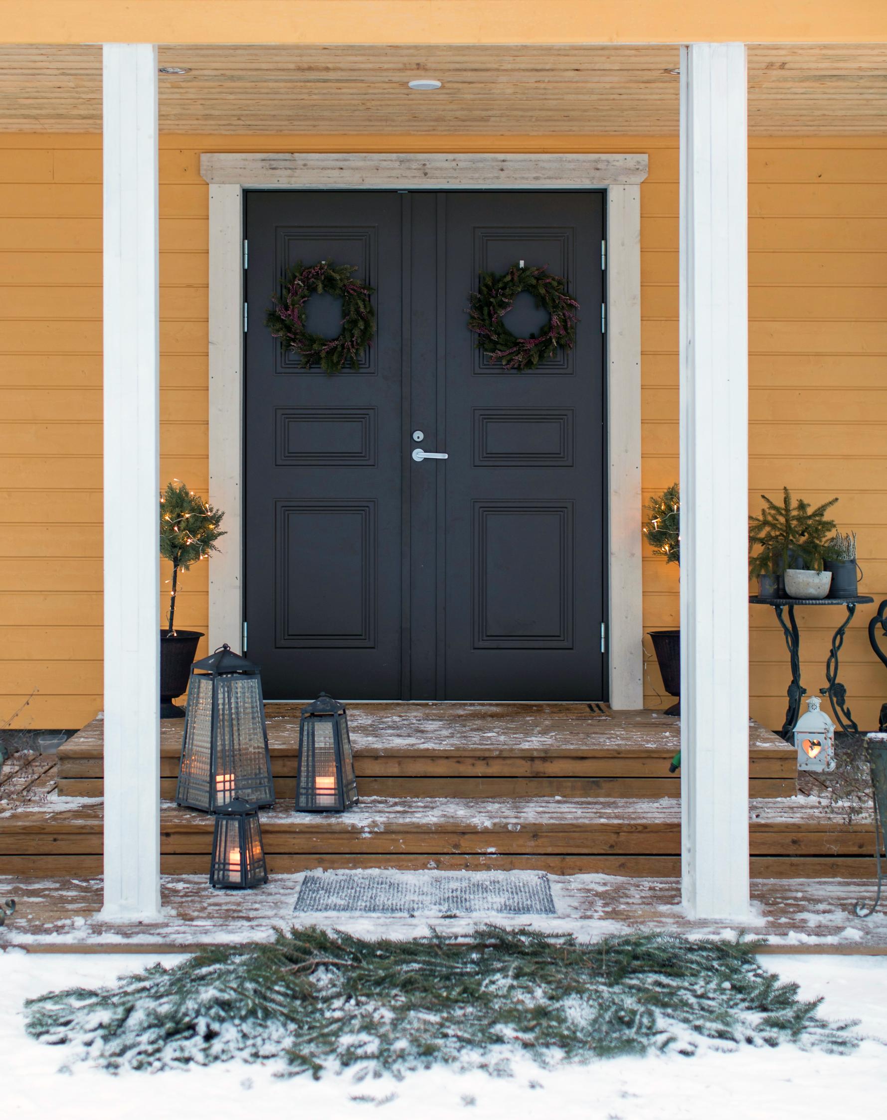 Havukranssi ovessa, pieni joulupuu ja hämärässä loistavat lyhdyt portailla. Kuuletko jo kulkusten kilinän? Kodin sisäänkäynnistä saa luotua jouluisen monella tapaa. Kokosimme ihanat kuvat – nyt joulu saa tulla!