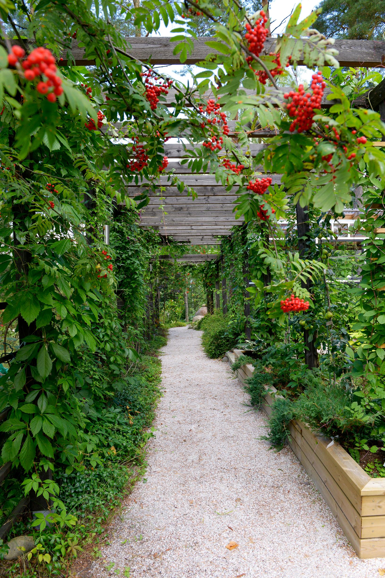 Kurkista puutarhuri Chatarina Munckin sadunomaiseen puutarhaan, jota koristaa hänen puolisonsa rakentama pergola.