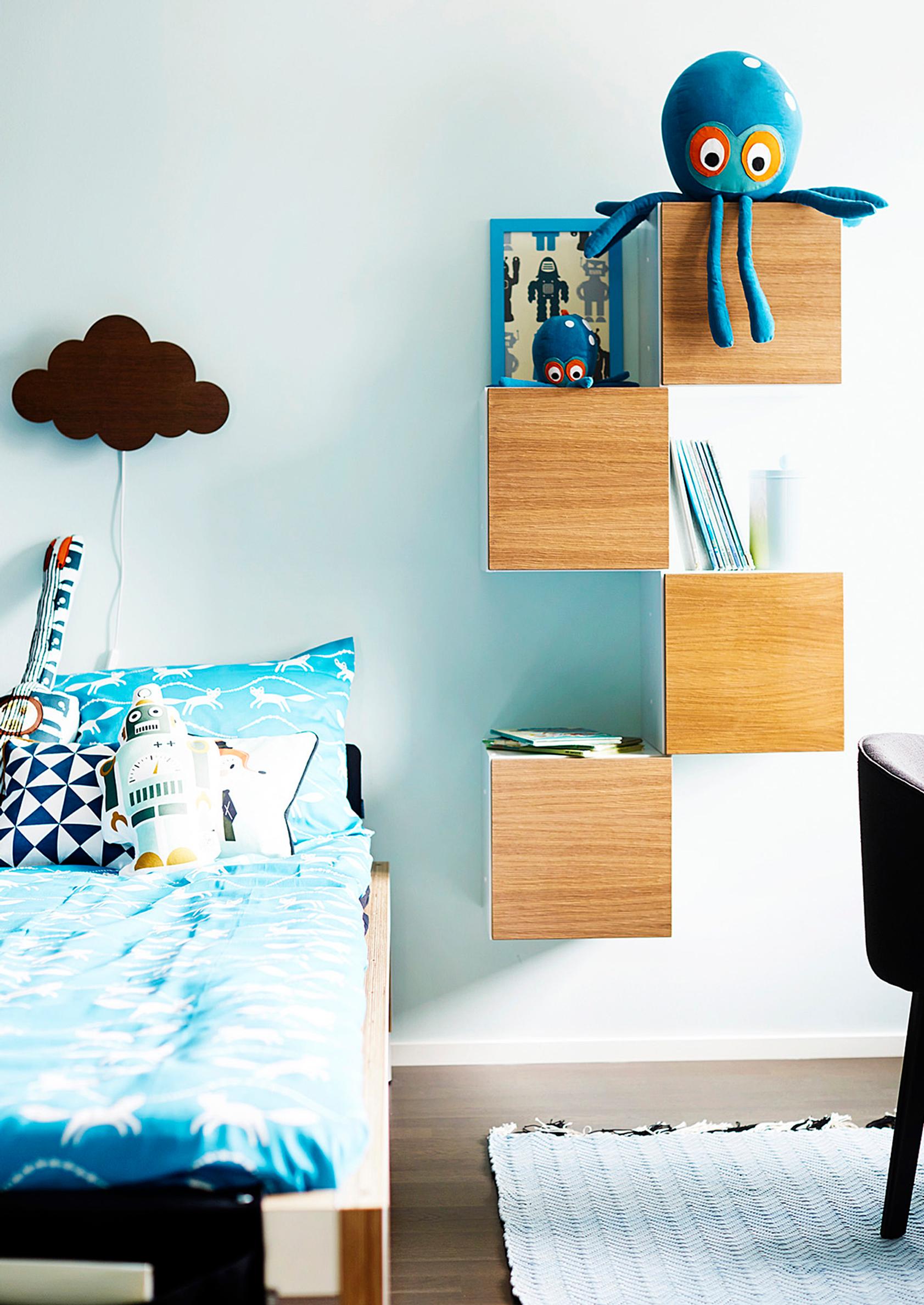 2. Vaalea puu, hieman siniseen sävytetty seinä ja turkoosit tekstiilit ovat moderni ja raikas yhdistelmä niin pojalle kuin tytölle.