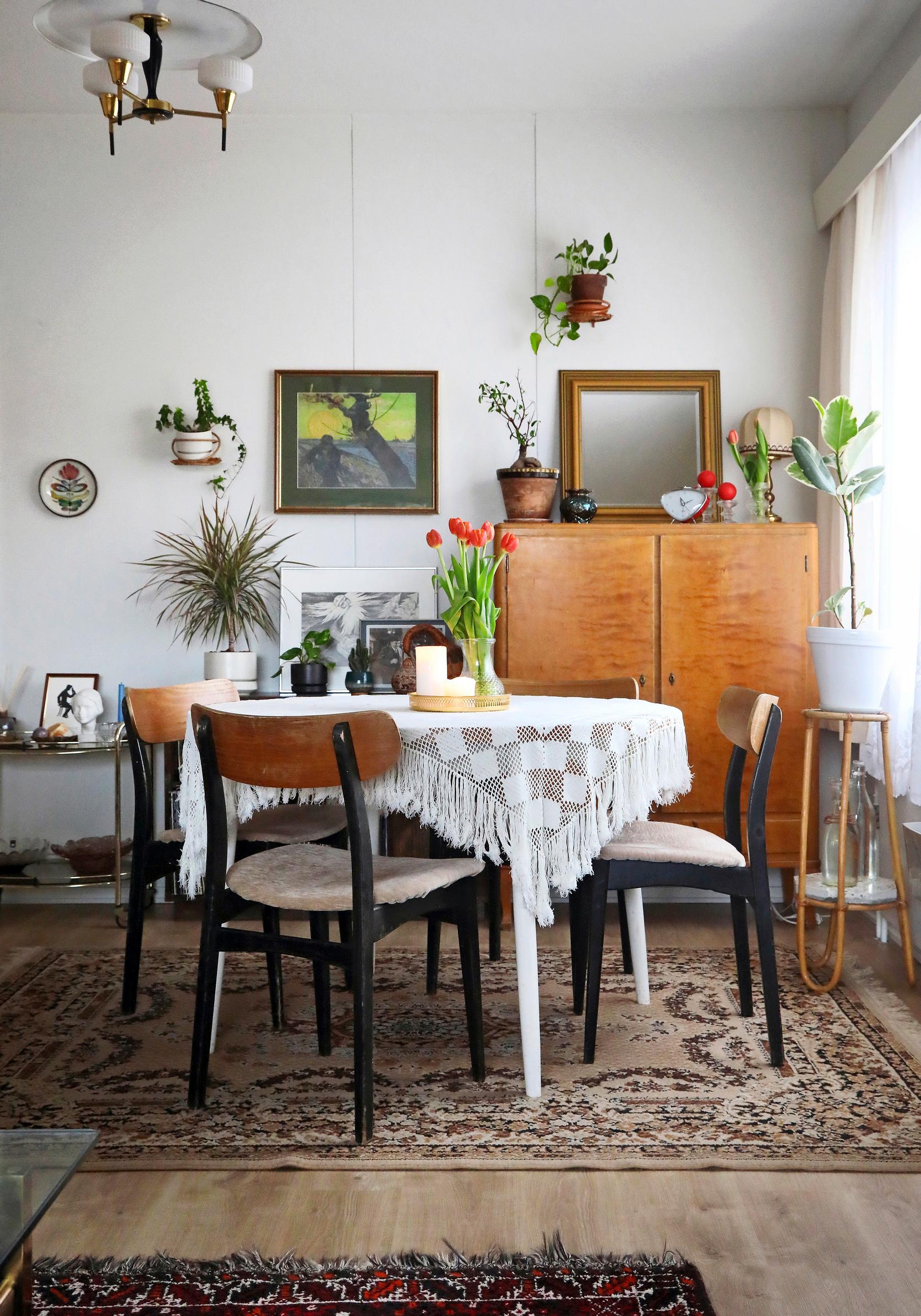 Olemme tehneet lähes kaikki kodin hankinnat kirppareilta, kierrätyskeskuksista ja huutokaupoista. Poikaystävältäni olen oppinut paljon suomalaisesta designista ja huonekalujen kunnostamisesta.