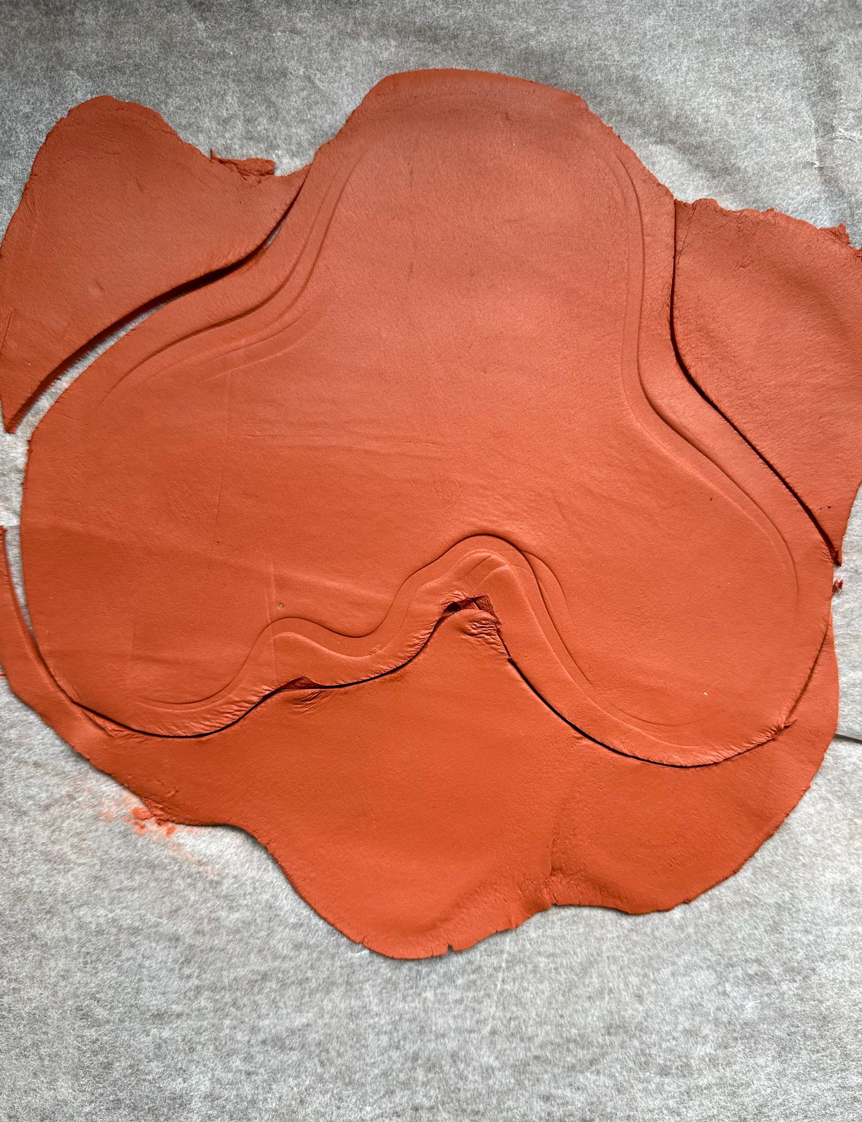 1. Kauli savi noin puolen sentin paksuiseksi levyksi. Paina maljakko kevyesti saveen, jotta saat suuaukon ääriviivat. Lisää noin sentti ympärille, sillä savi kutistuu vähän kuivuessaan. Leikkaa muoto veitsen avulla irti. Jätä reunat sileäksi tai rypytä reunat kuin karjalanpiirakassa.