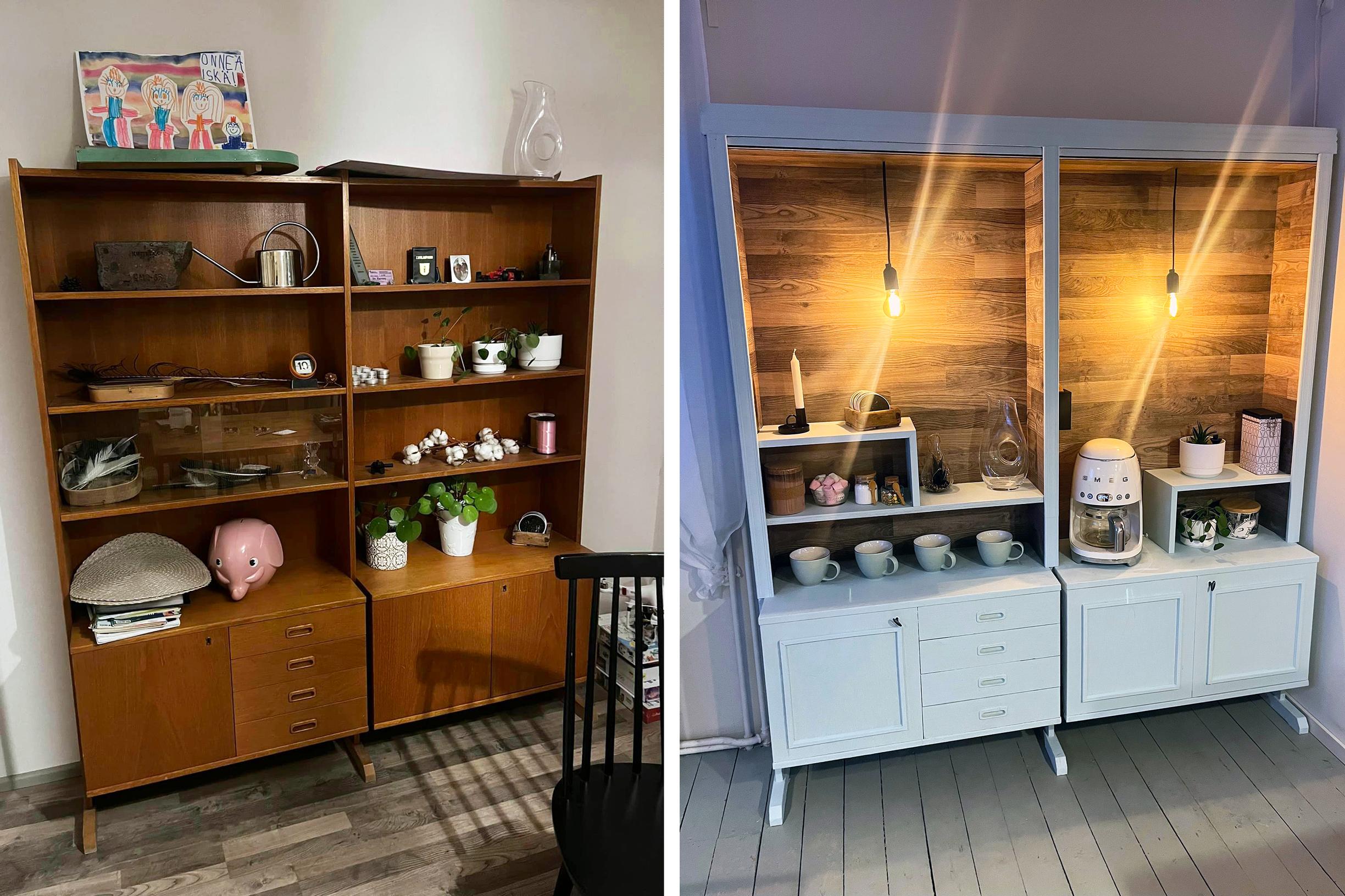 Kerro siitä, miten muutit kirjahyllyn aamiaiskaapiksi.