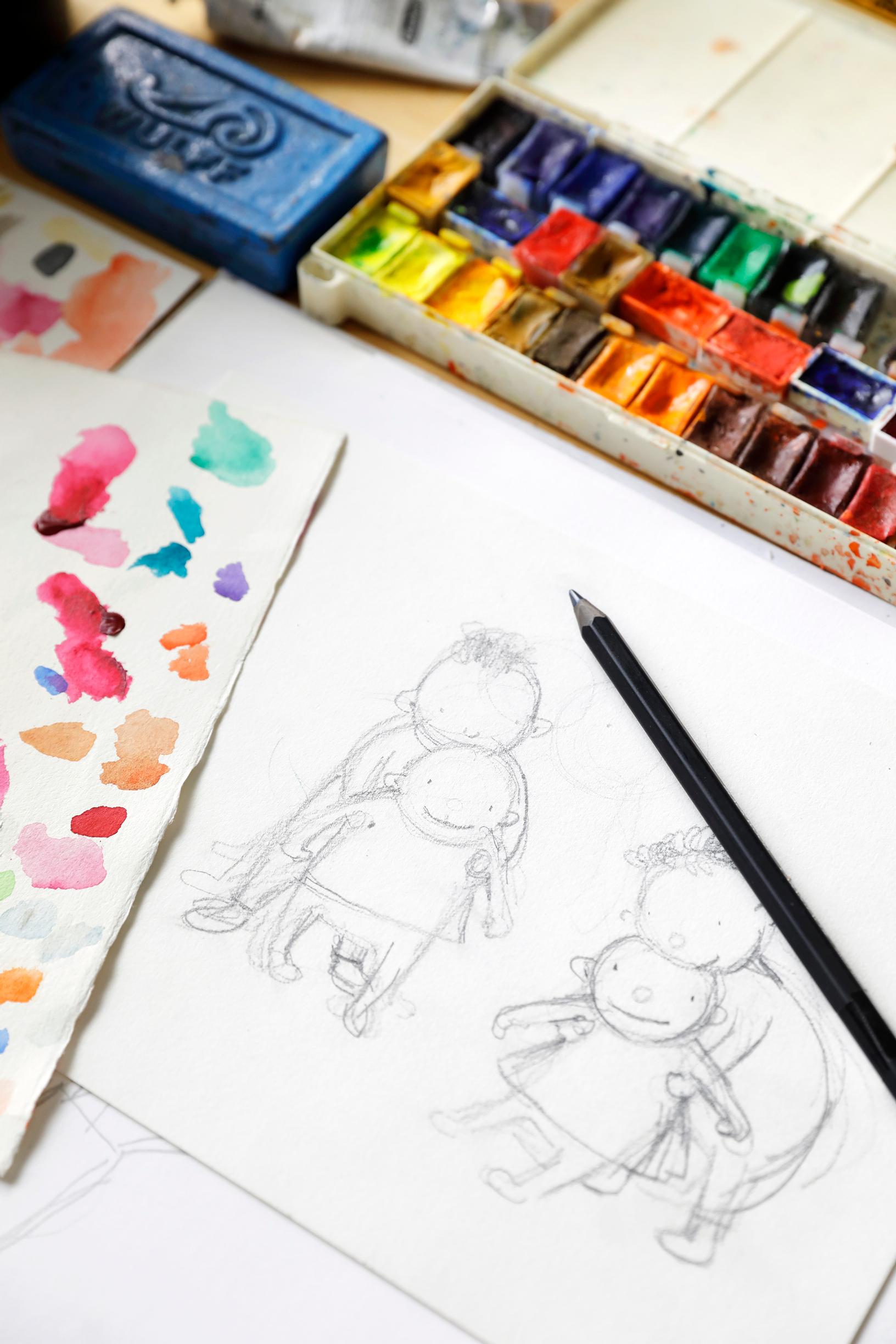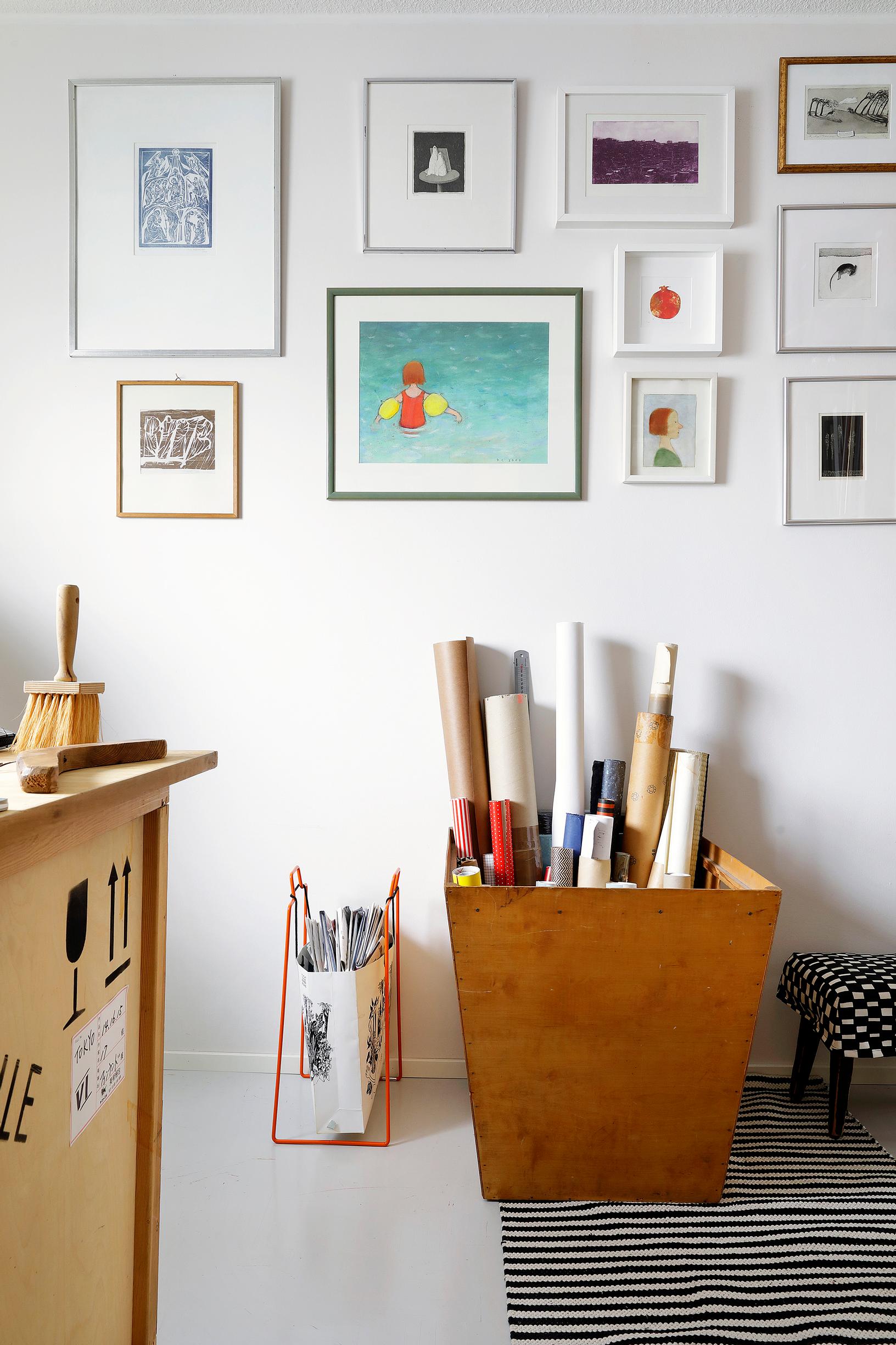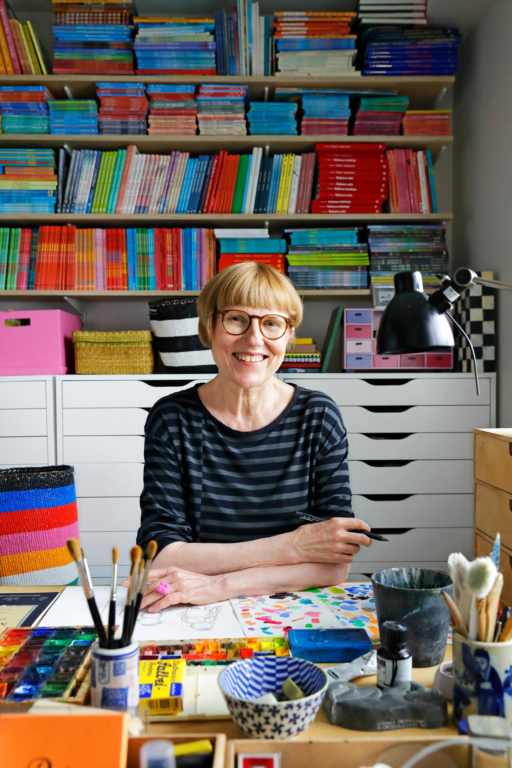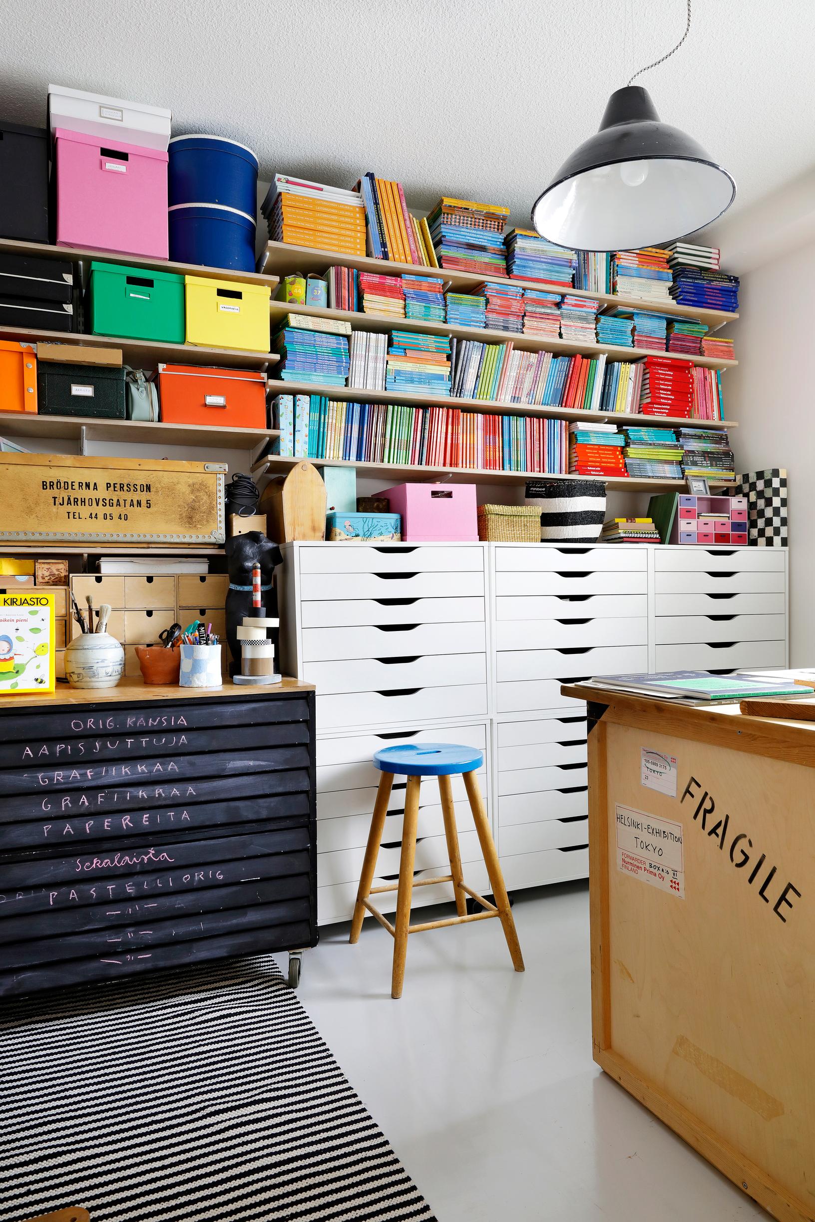 Muuttokuormaa kasvattivat vanhojen rakkaiden huonekalujen lisäksi vuosikymmenten varrella kertyneet arkistot: kirjeet, lasten piirrustukset, omaan työhön liittyvät piirrosoriginaalit ja tekijäkappaleet. Paljosta pitää kuitenkin luopua, kun muuttaa puolet pienempään asuntoon.