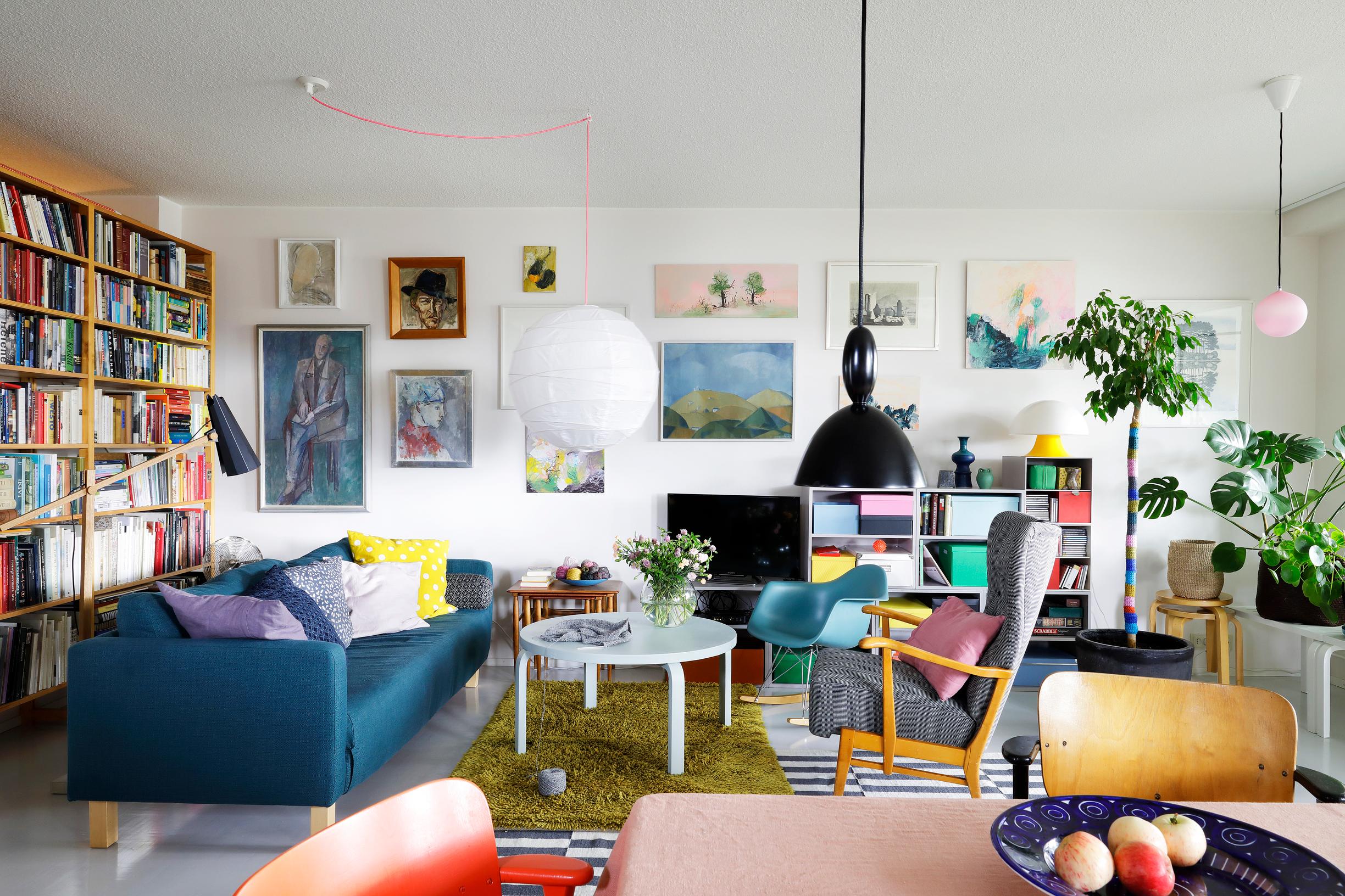 Aino-kirjojen tekijä Kristiina Louhi loi 80-luvun kerrostaloasunnosta värien leikkikentän: "Sisustaessa voi huvitella ja ottaa riskejä. Jos joku väri ei näytä hyvältä, maalataan uutta"