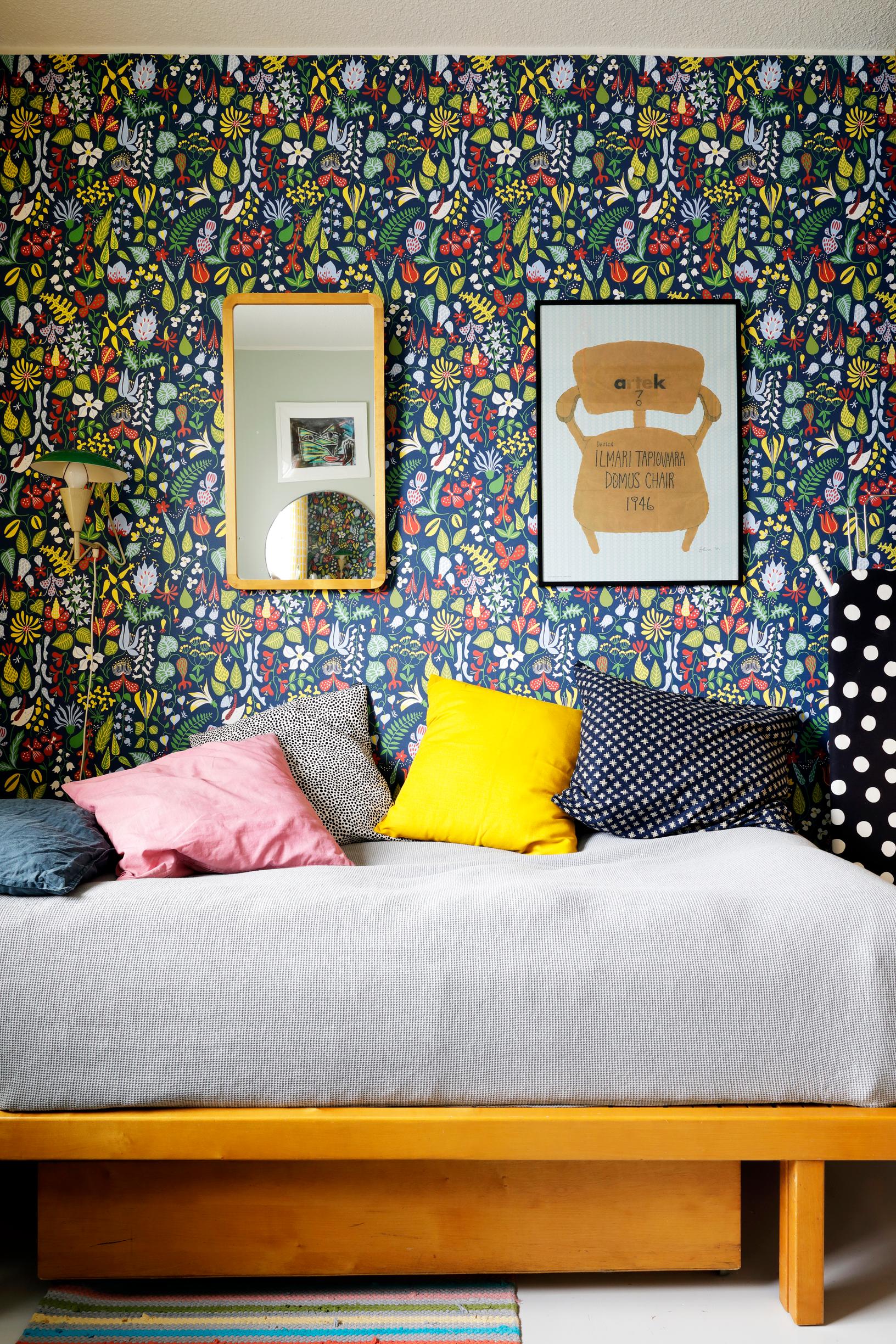Koska vietän paljon aikaa kotona jo työnikin puolesta, se on minulle todella tärkeä paikka ja myös yksi luovuuden kohde. Kun löysin alennusmyynnistä ruotsalaisen kukkatapetin, en ollut ollenkaan varma, sopiiko se kotiini. Tapetti oli vain niin ihana, että pakko oli saada sitä johonkin seinään. Se tuli lopulta vierashuoneeseen.