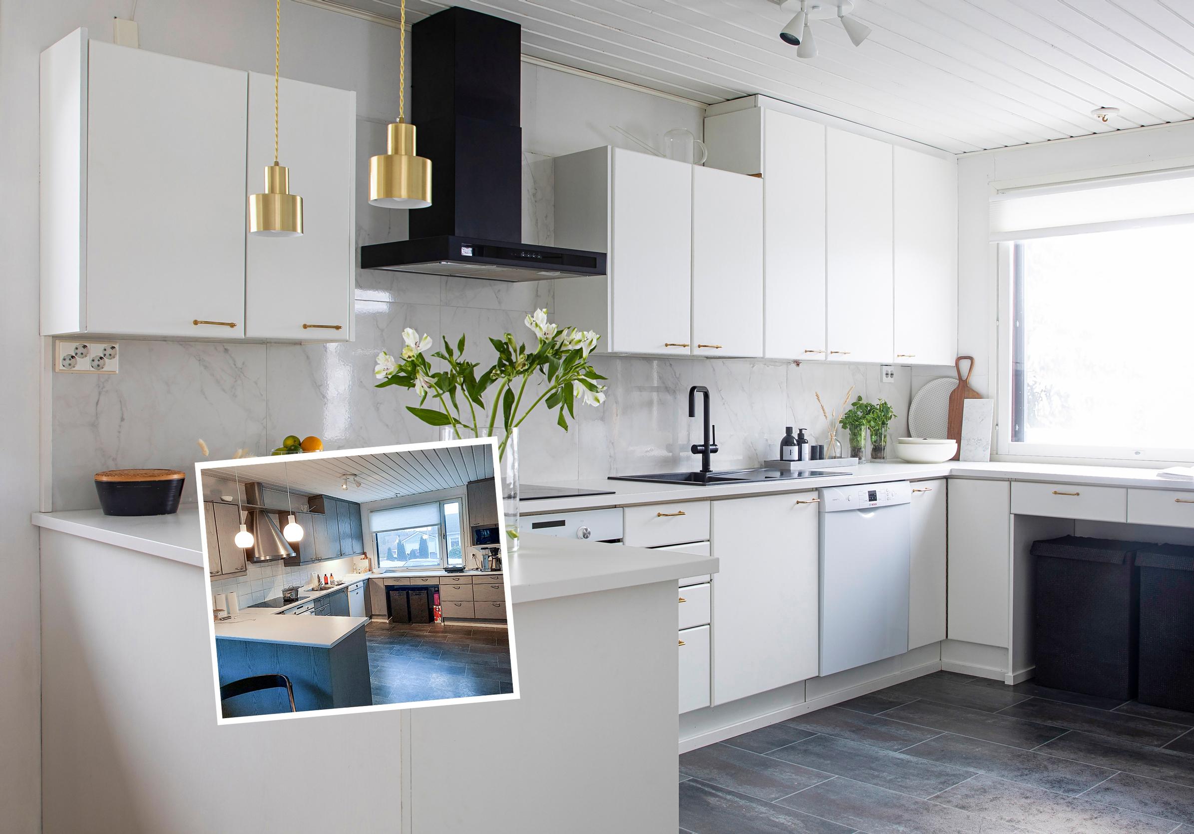 Kun nelihenkinen kaarinalaisperhe muutti kuusi vuotta sitten lokakuussa 1970-luvun omakotitaloon, he tekivät kotiin pientä pintaremonttia. Suurin muutoksiin ei haluttu ryhtyä heti, sillä he olivat saaneet juuri valmiiksi ison mökkiremontin. 1990-luvulla uusittu harmaa keittiö ei vastannut perheen toiveita, mutta sen remontointi päätettiin jättää myöhemmäksi.