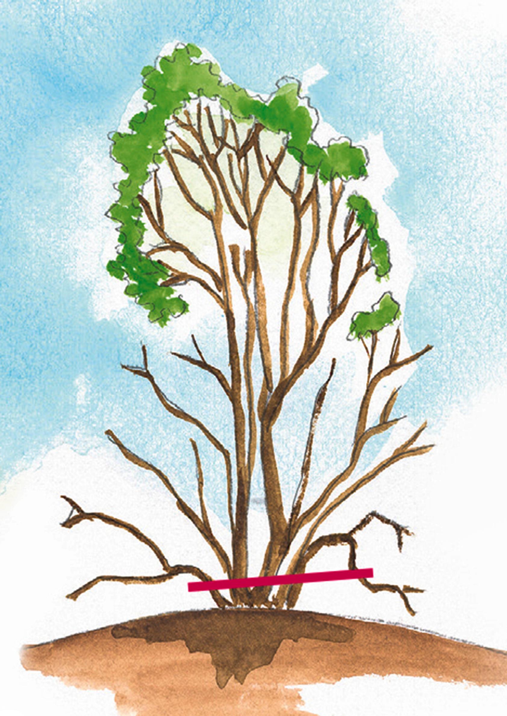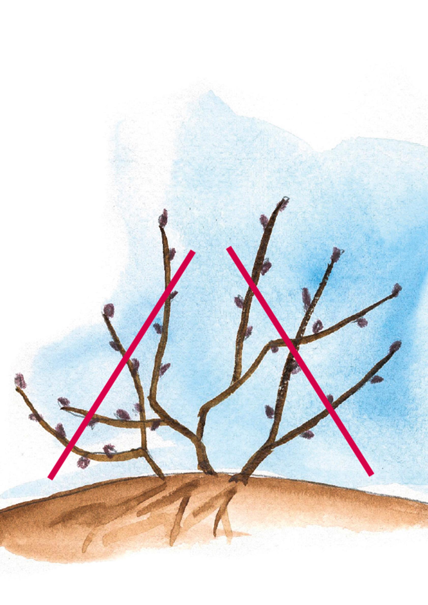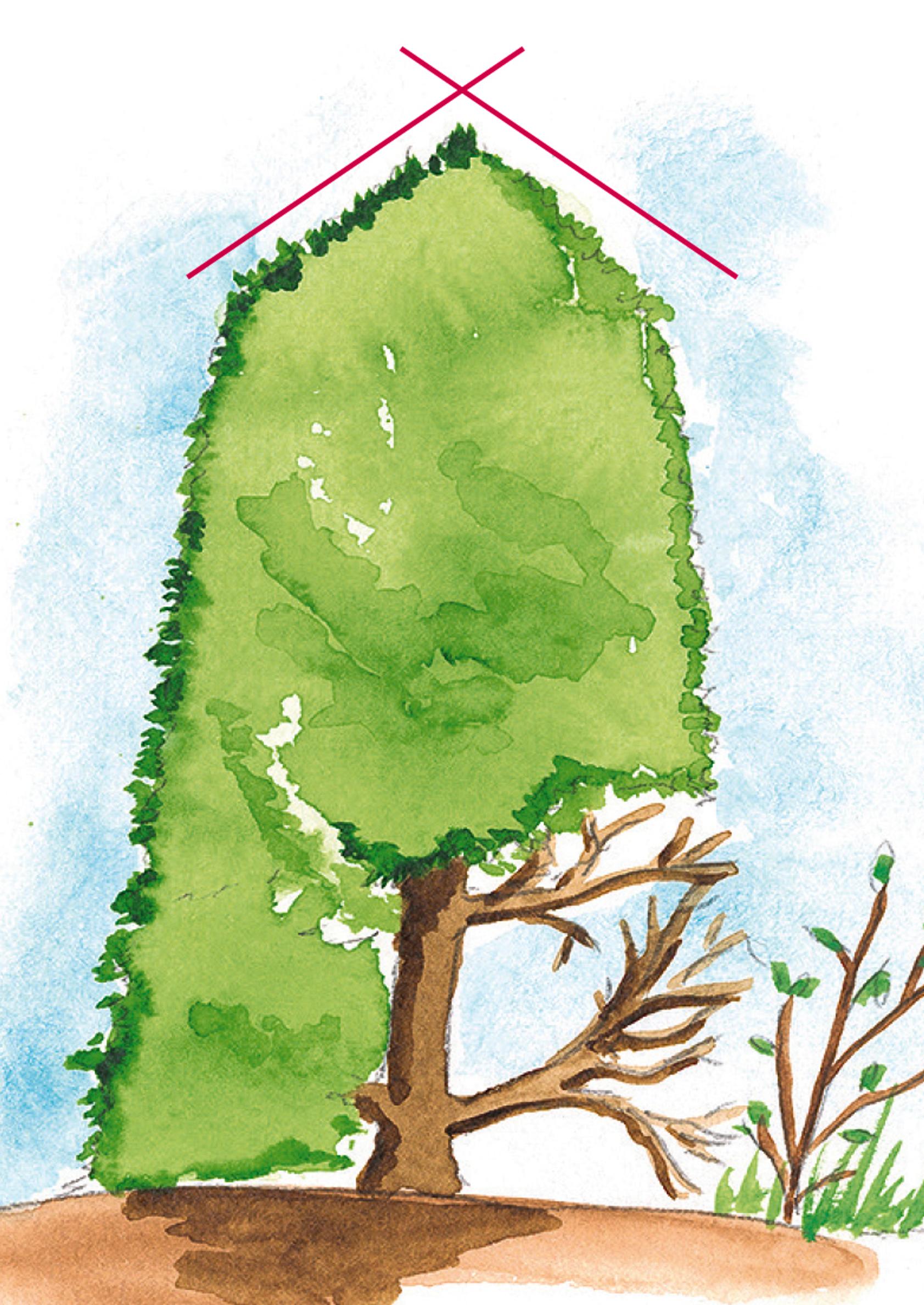 3. Kun lyhennät latvaversoja hieman enemmän kuin tyviversoja, saat pensasaitaan vähitellen A-profiilin. Tällöin alaoksat saavat riittävästi valoa, eivätkä ne jää yläosan varjoon.