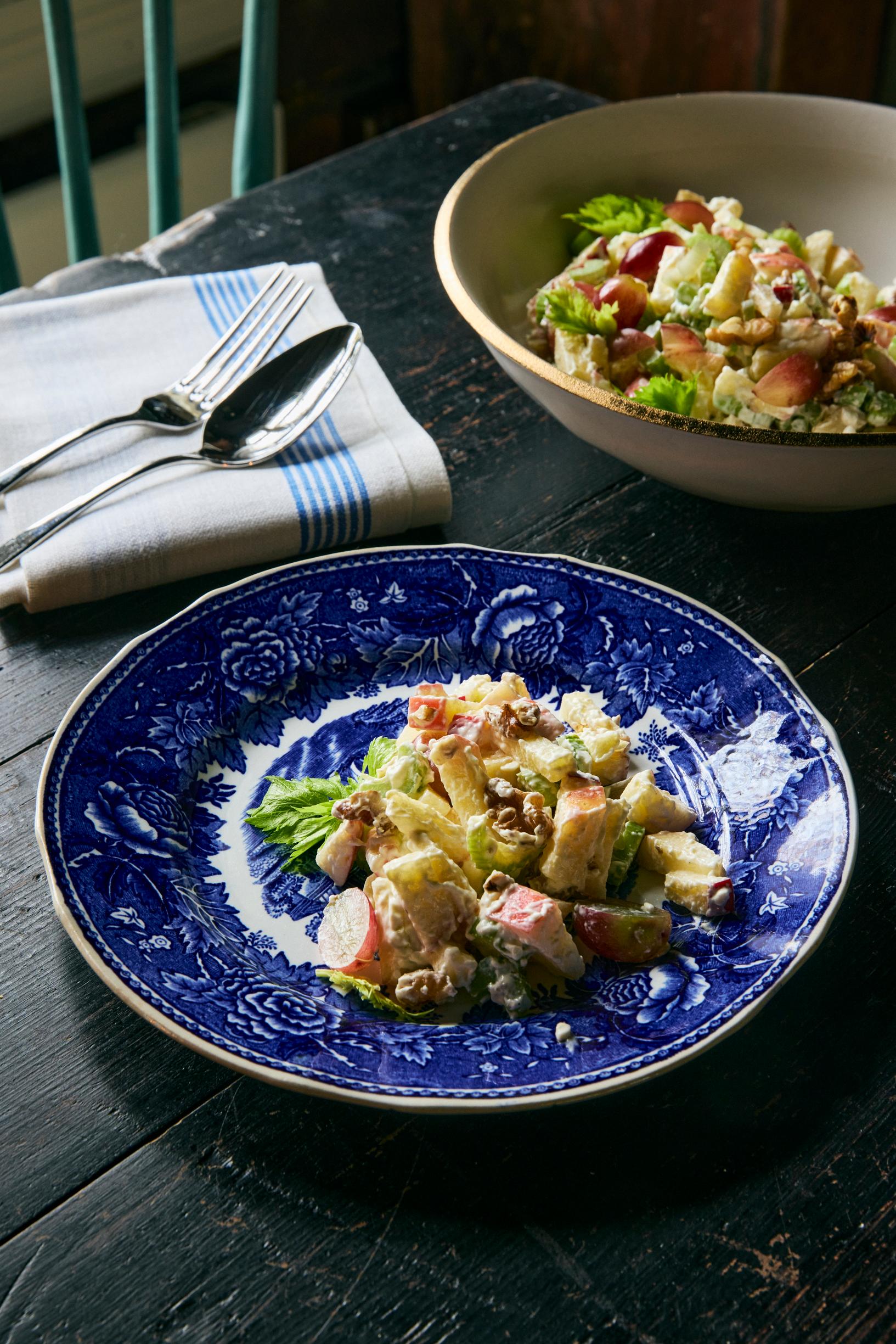 Waldorfinsalaatti on Leenan suosikki, jota hän tekee joka joulu – vaikka saakin syödä kaiken melkein yksin. ”Olisiko se selleri, minkä vuoksi ei maistu muille?” Leena pohtii. Salaatin voi valmistaa jo edellisenä päivänä, ja se säilyy hyvin jääkaapissa muutaman päivän.