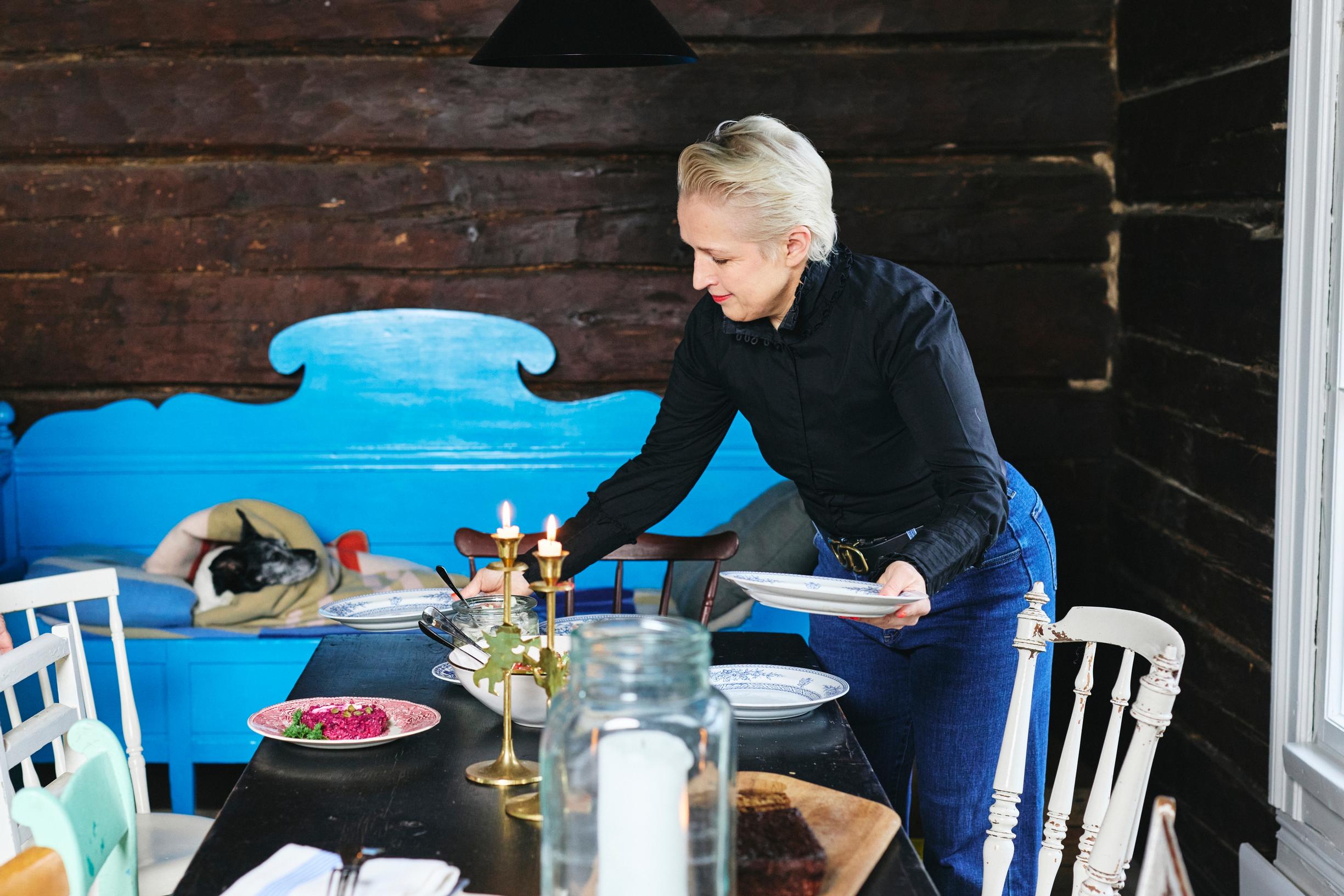 ”Meidän joulut on niin kovaa toimintaa, kun porukkaa on paljon, että huh huh”, punaisen tuvan omistaja, toimittaja ja valmentaja Anna Perho naurahtaa.