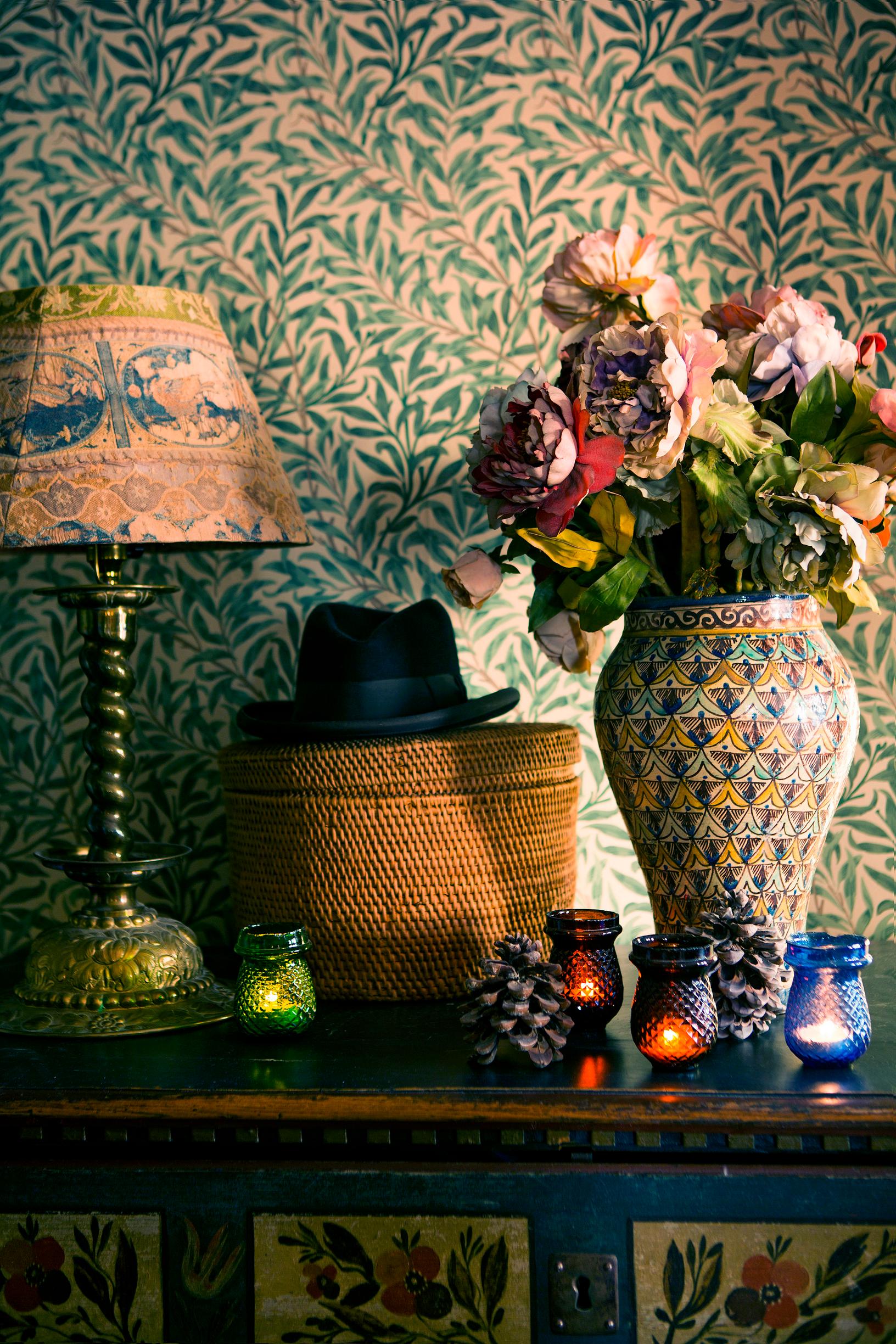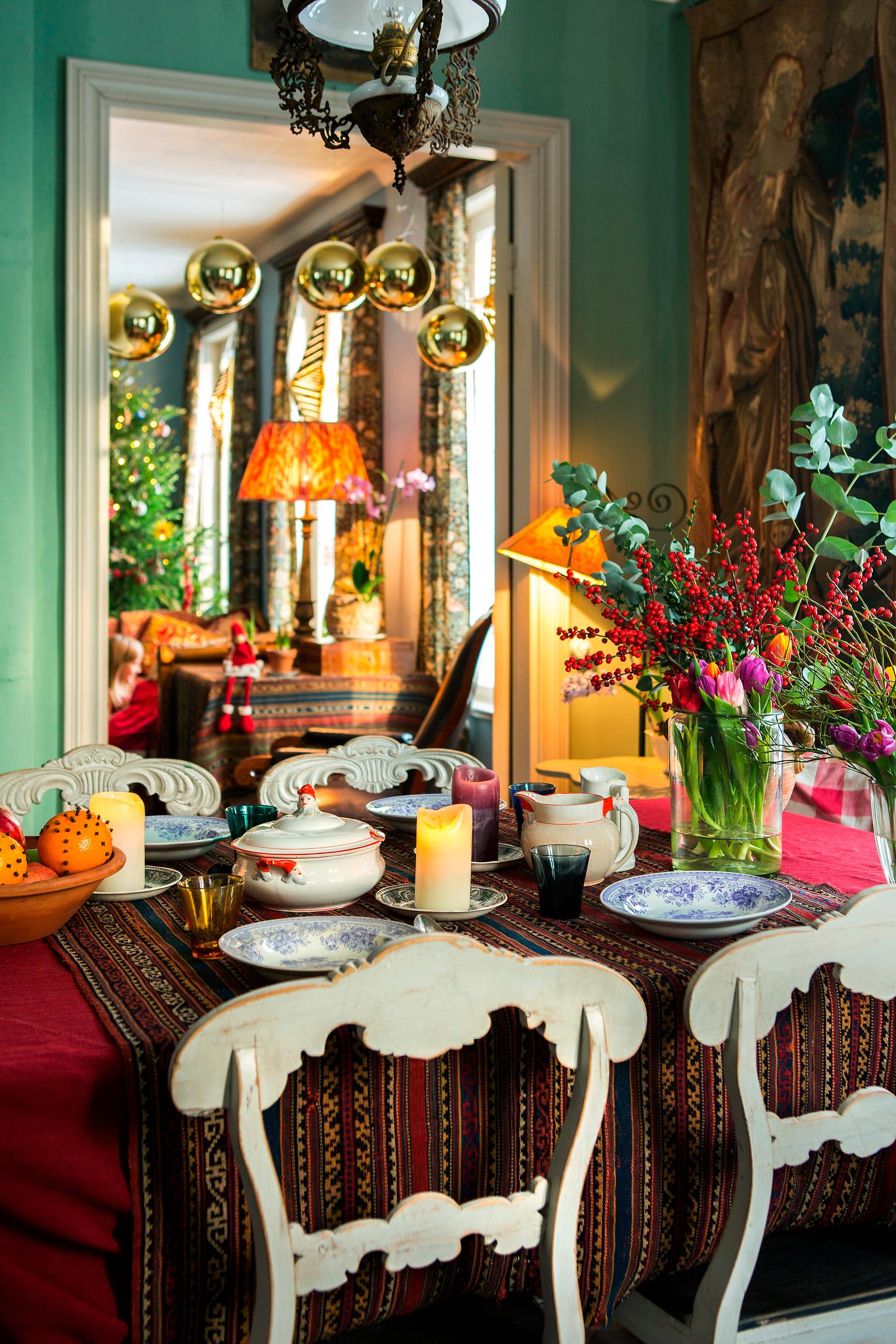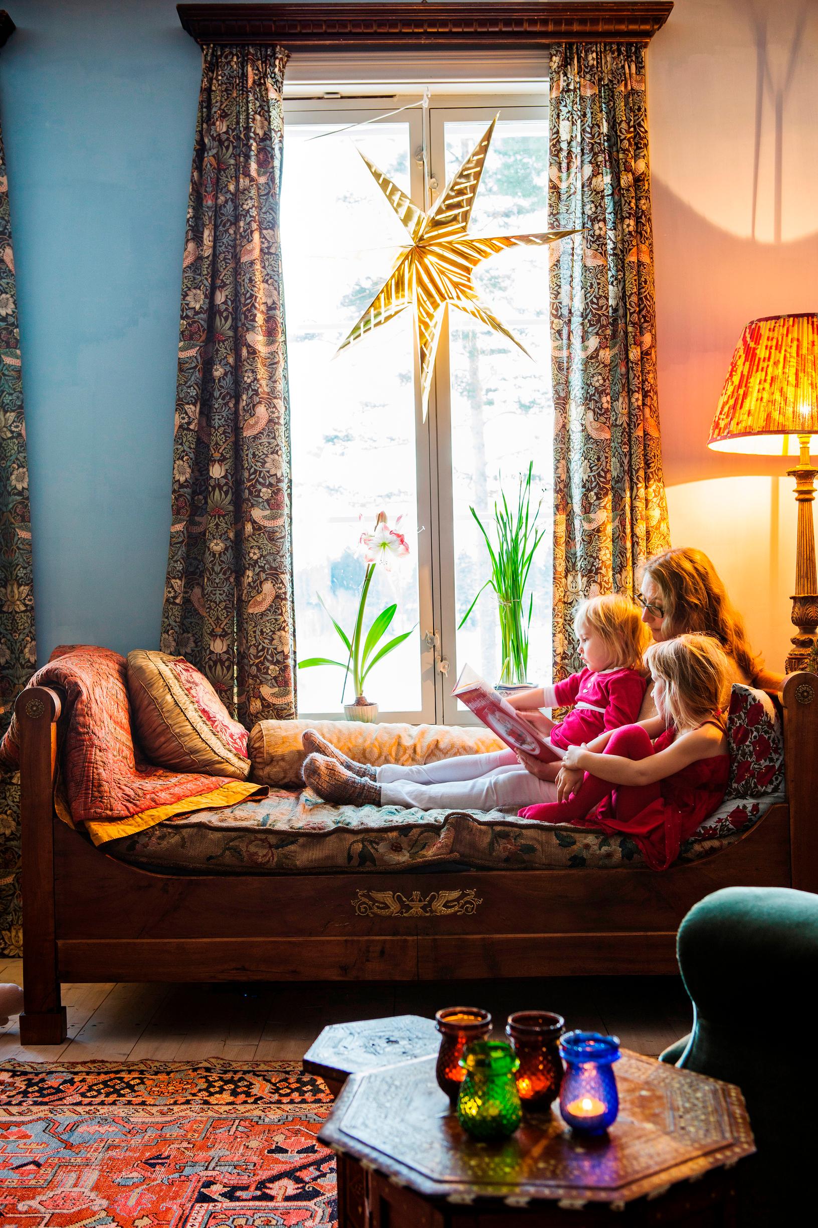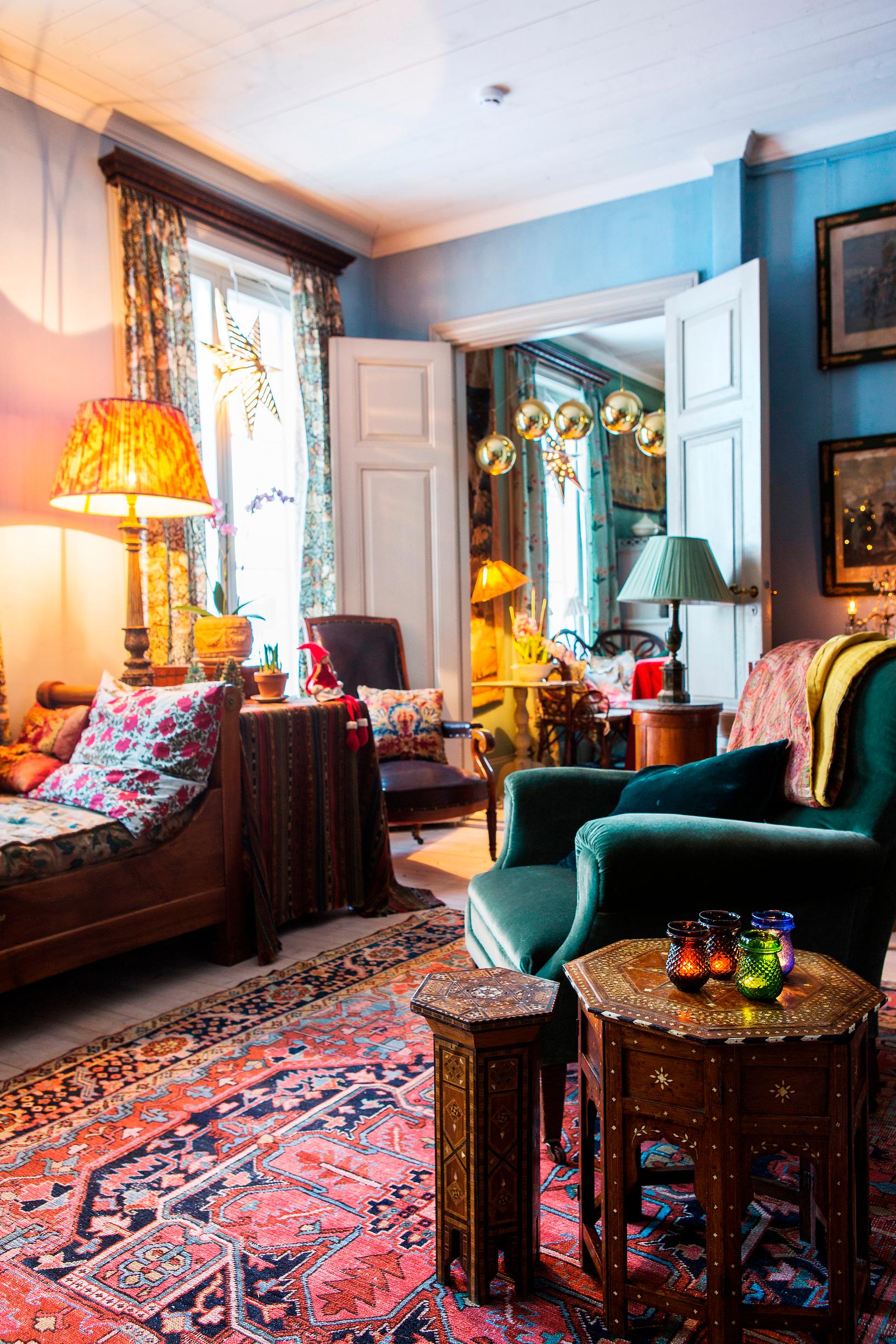 Annan ja Kimmon perheen koti on kuin vanhan ajan joulusadusta: muhevia tekstiilejä, antiikkikalusteita ja kaakeliuunin lämpöä!