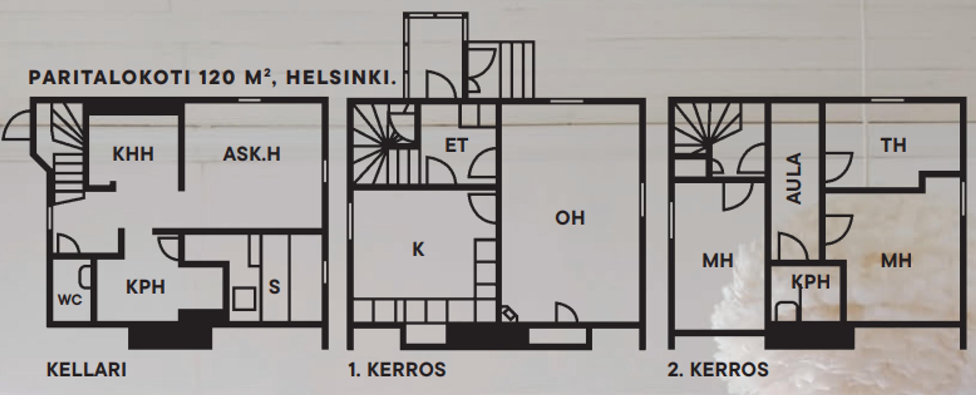 Pasi: Erityispiirteitä ovat kattojen helmiponttipaneloinnit ja korkeat ruutuikkunat, joiden alareuna on tavallista alempana, sekä tehokkaasti rakennetut kierreportaat, jotka eivät lohkaise liikaa tilaa eteisestä.
