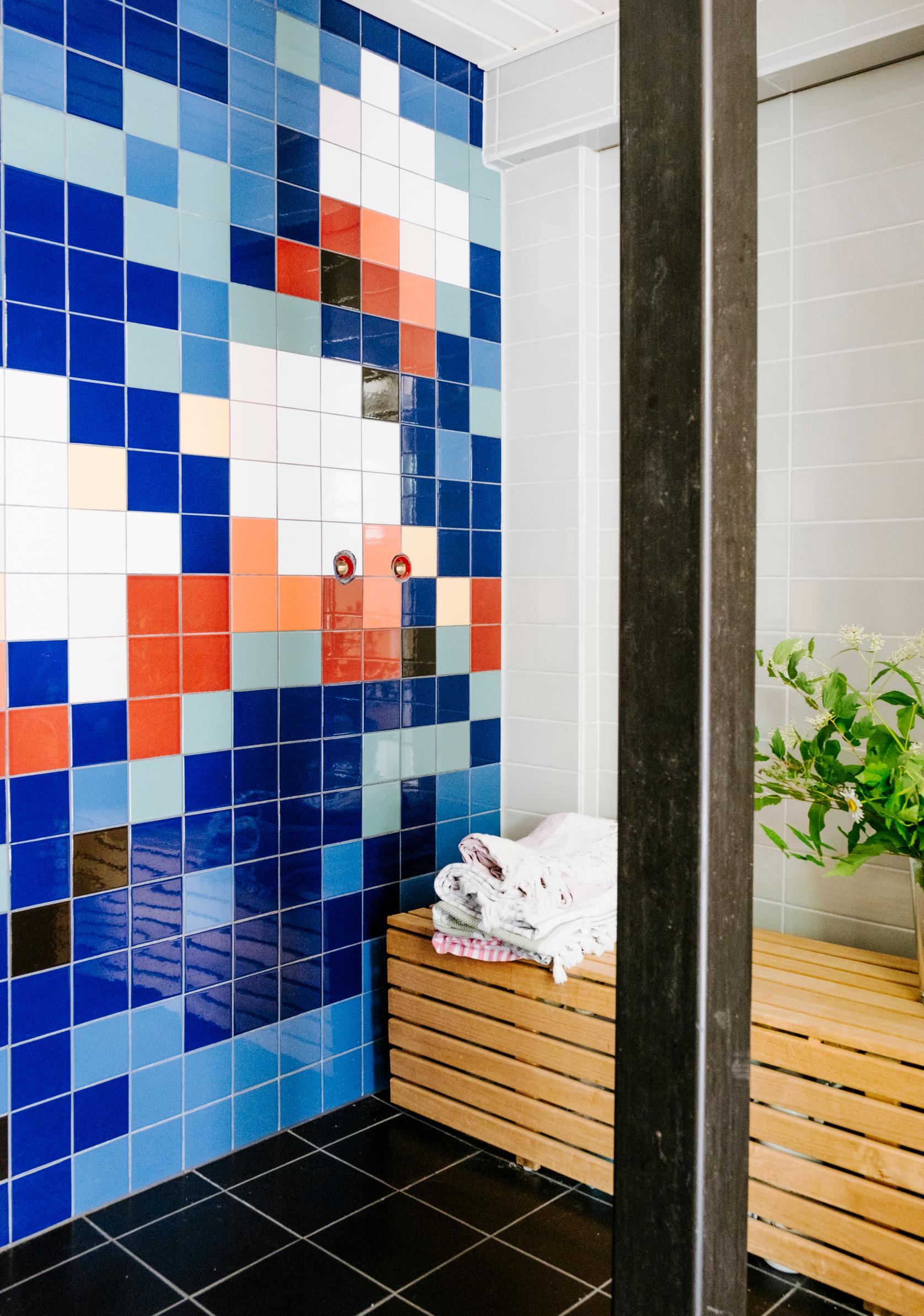 Hirsiseinissä oli pinkopahvit, joiden alla oli monta kerrosta tapettia. Koska seinissä ei ollut eristeitä, laitoin niihin koolaamalla kipsilevyt saadakseni ilmaraot. Kipsilevyn voi maalata ja tapetoida, eikä lopputuloksesta näy, kuinka vanha ratkaisu on kyseessä. Retrotyyliset valokatkaisimet ja pistorasiat tukevat autenttista vaikutelmaa.