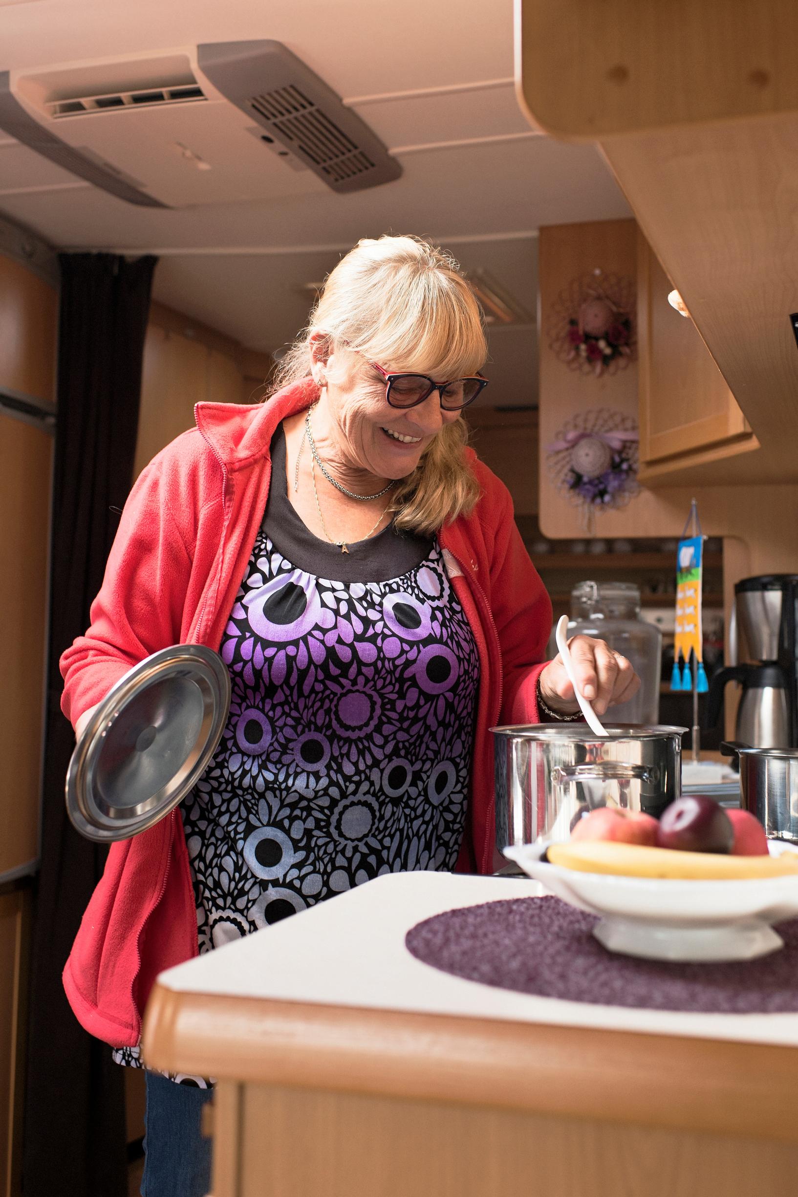 Hän on mieltynyt myös vaunuasumisen vapauteen. Jos haluaa seuraa, ei tarvitse kuin astua ovesta ulos. Jos haluaa rauhaa, astuu ovesta takaisin sisään. Ja takaraivossa on aina mielessä se, että maisemaa voi vaihtaa, jos tuttu tienoo alkaa tympäännyttää.