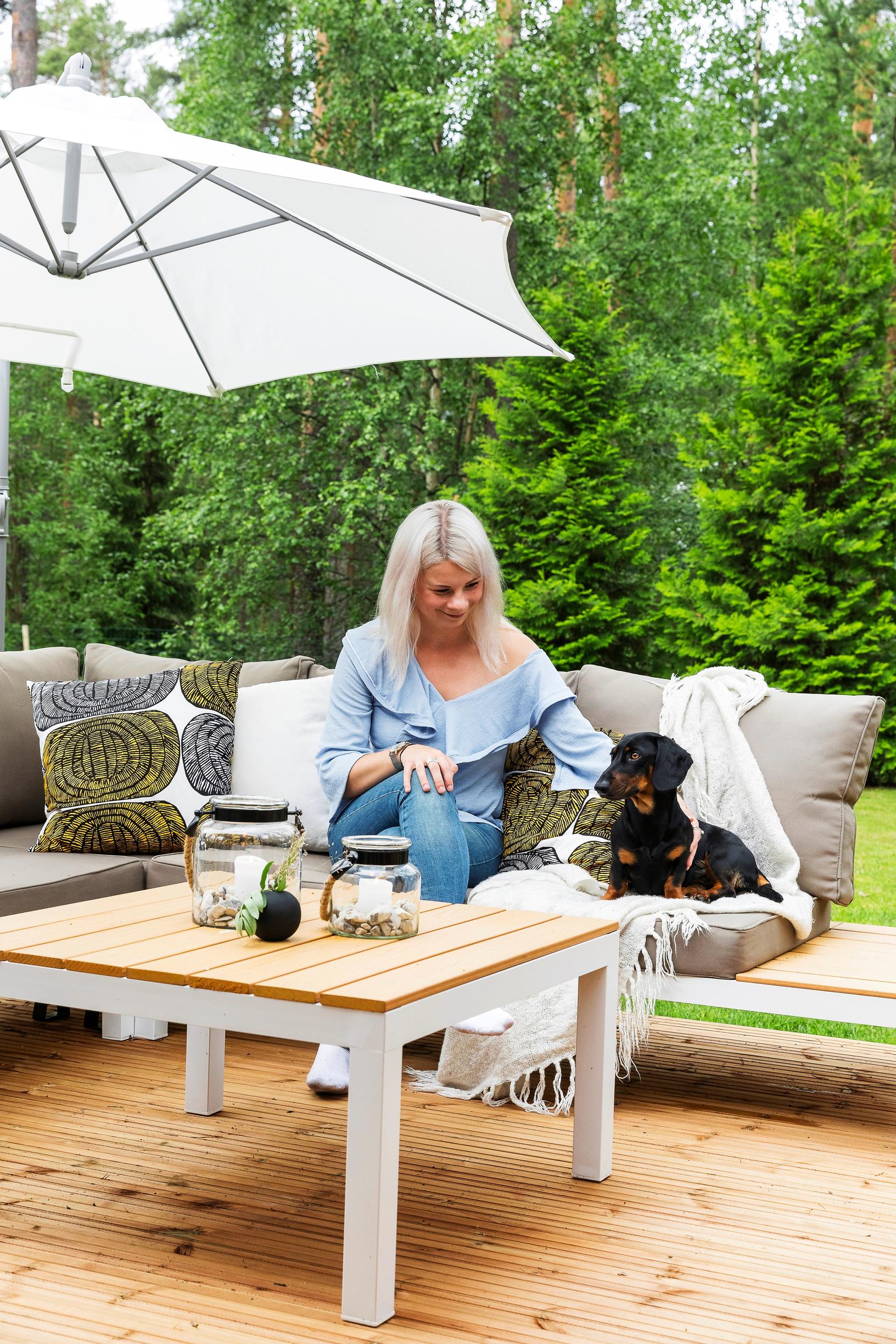 "Aloin katsella sisustuslehtiä ja -ohjelmia sillä silmällä, ja ne pursuivat ideoita. Sisustusintoinen kaksoissiskoni Heidi tsemppasi lisää. Ensi töikseni valkaisin asunnon vaihtamalla tekstiilit vaaleammiksi. Hankin uudet verhot, sohvatyynyt ja maton. Muutimme Laurin asunnosta vuoden kuluttua, mutta sisustusinto jäi pysyväksi.