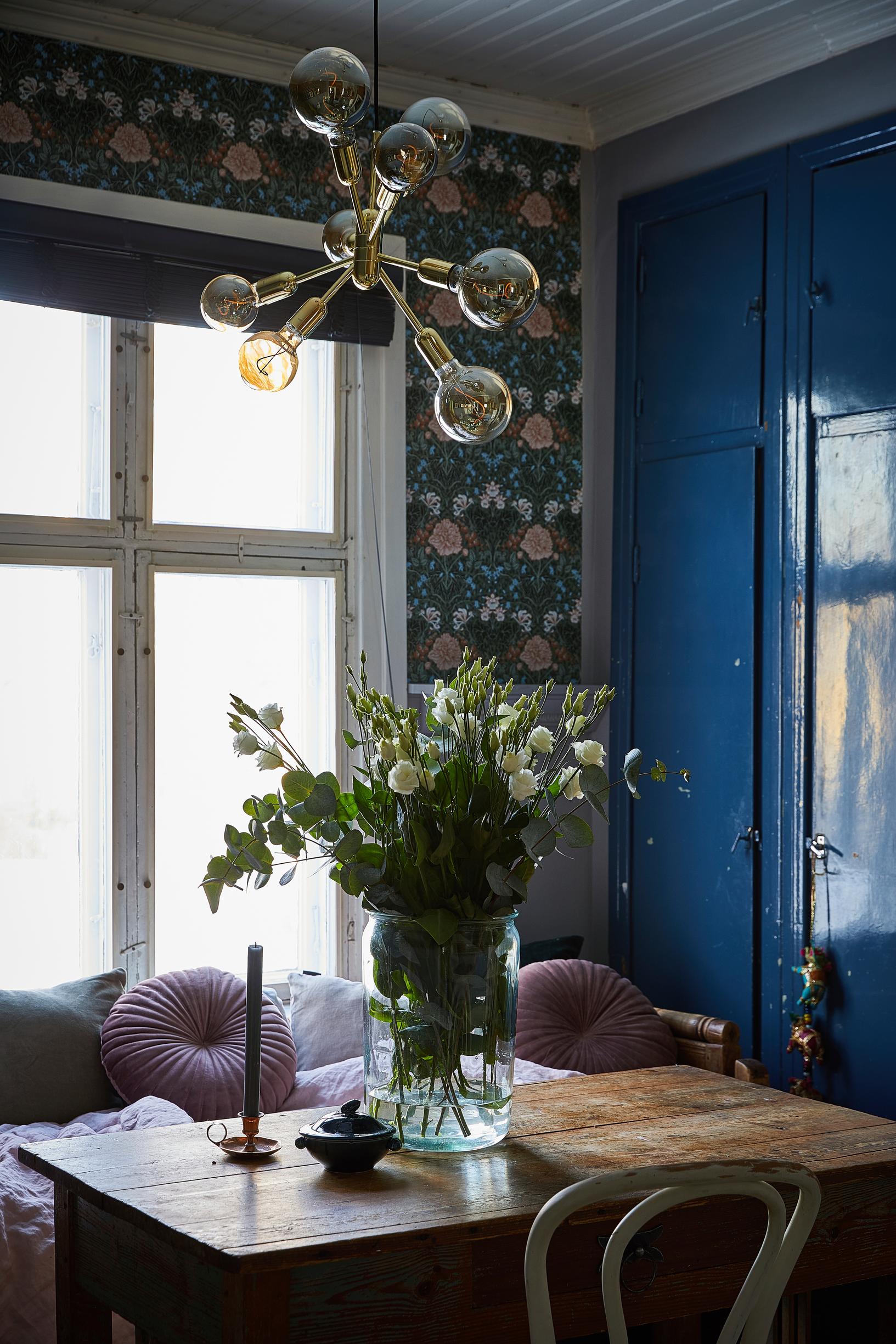 Hanna Wendelbon Lyckebo-tapetti toimii hyvänä parina siniselle.