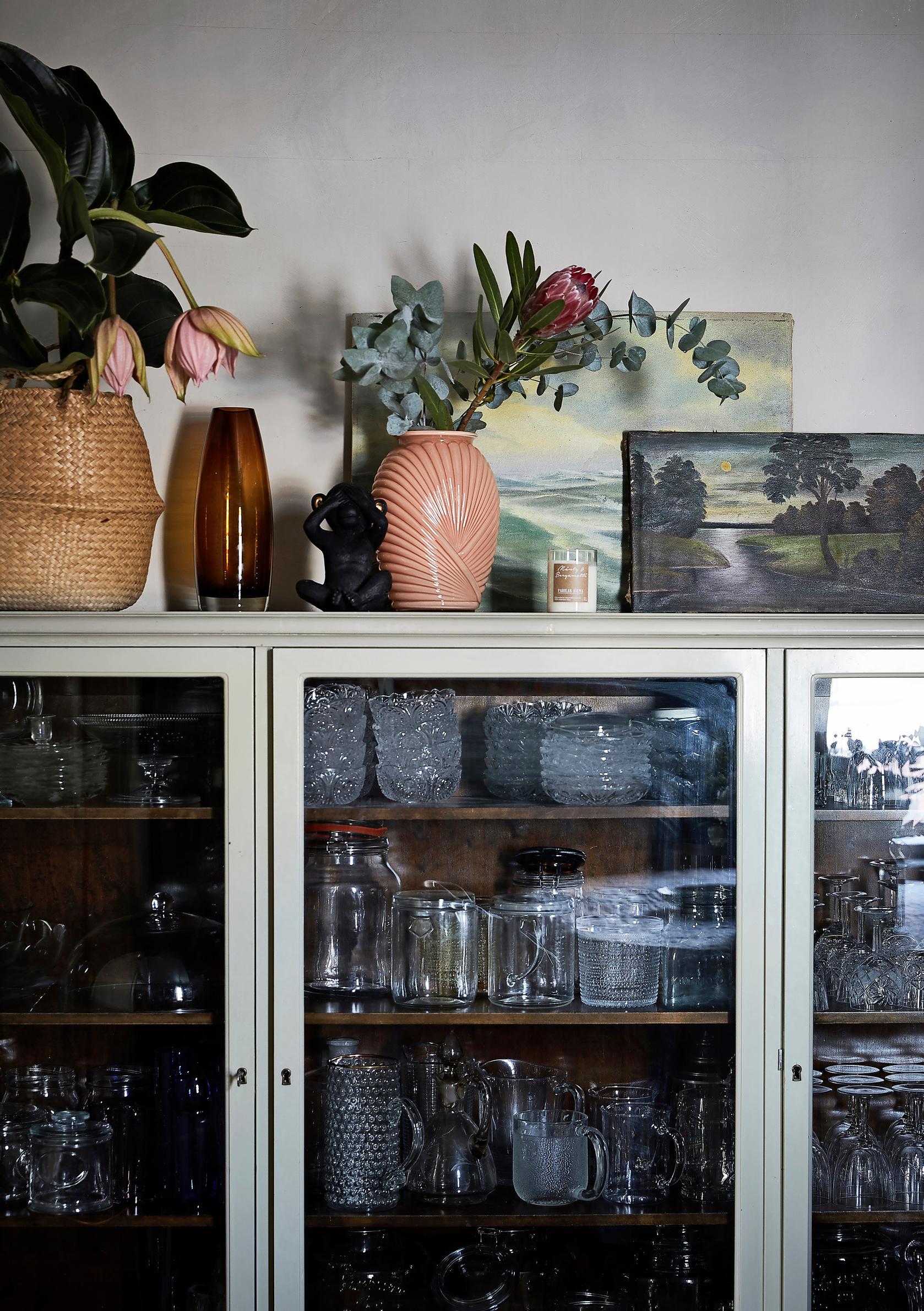 Julia kerää lasitavaraa intohimoisesti. Kaikki rakkaimmat löydöt hän säilyttää keittiön suuressa lasivitriinissä. Vintille on silti kertynyt peräti 50 laatikollista lasitavaraa, jota Julia myy antiikkimarkkinoilla. Täydellinen kaappi löytyi pitkän etsinnän päätteeksi nettikirpputorilta. Hurmaavan puuteriroosansävyisen vintagemaljakon Julia sai lahjaksi sisareltaan.