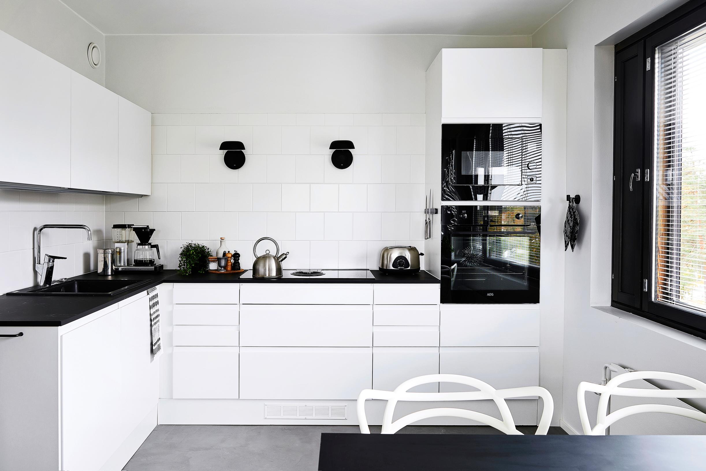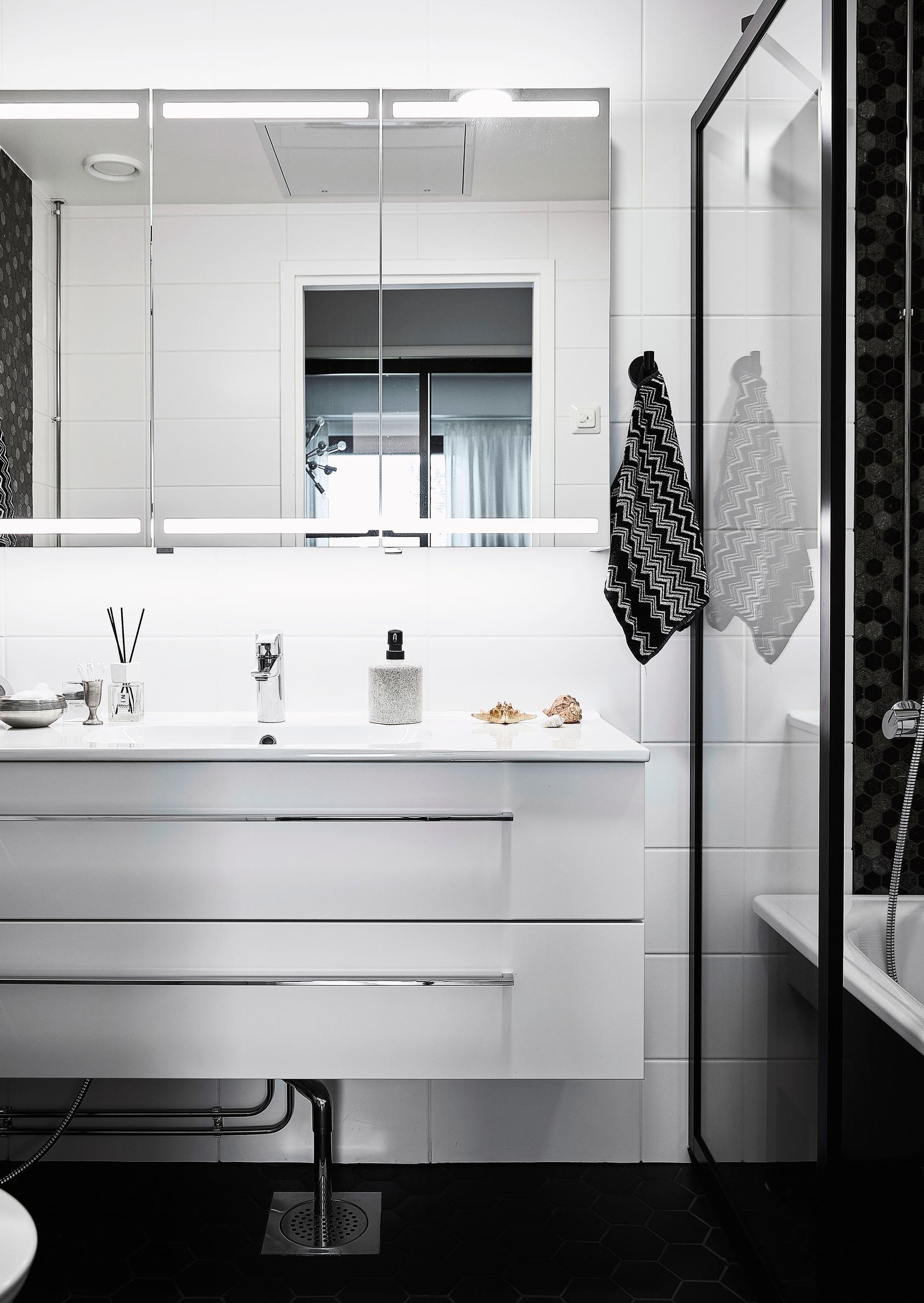 Kosteat tilat ovat ylelliset verrattuna alkuperäisiin. Tässä oli asunut sama perhe 1970-luvulta saakka, joten saimme huoletta pistää kaiken uusiksi. Uusimme myös asunnon alkuperäisen kodinhoitohuoneen, joka on ollut edistyksellinen ratkaisu 1970-luvulla. Kaadoimme seinän keittiön ja ruokailutilan välistä, millä saimme kaipaamaamme avaruutta. Nyt kaikki toimii.