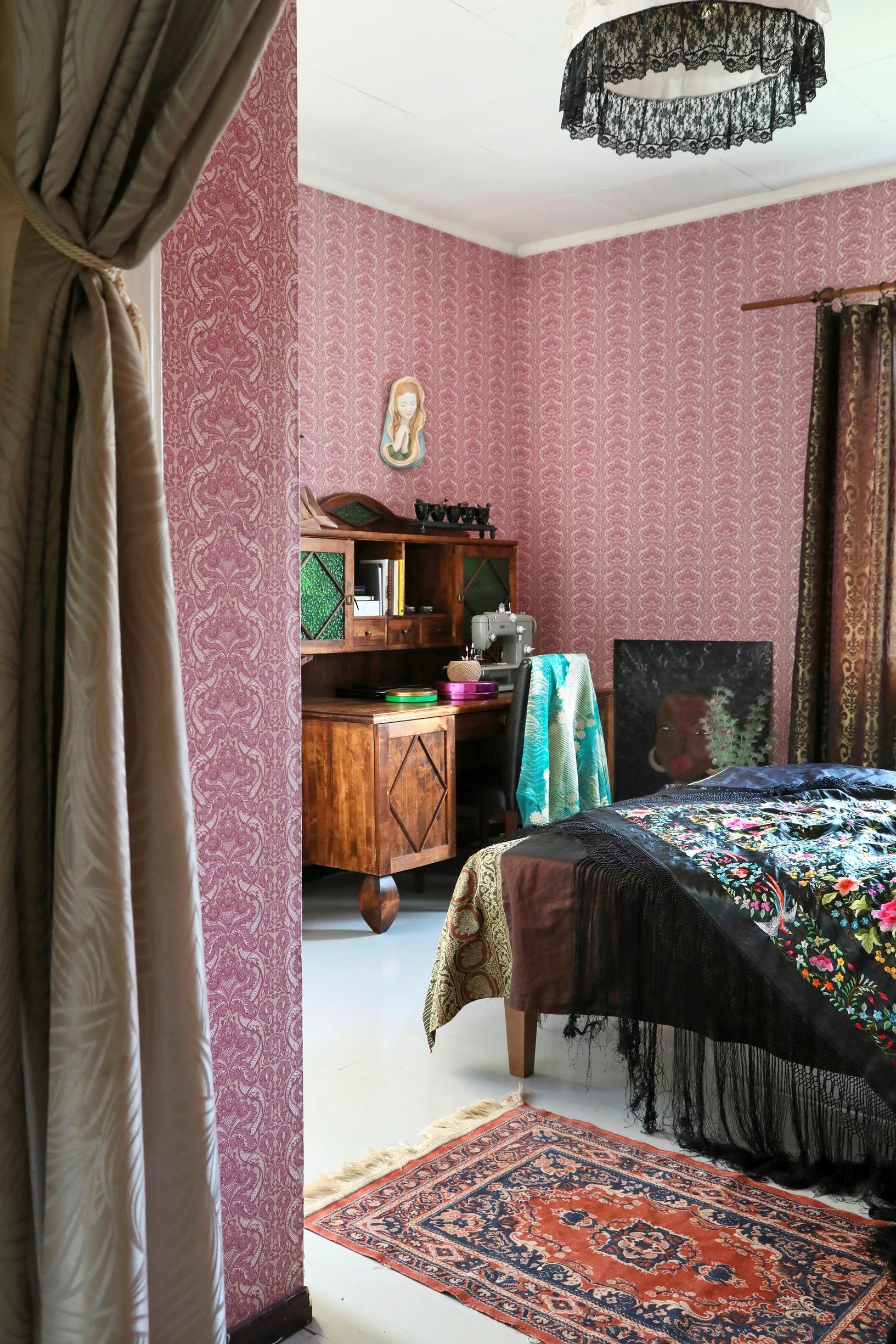 Minulla on rohkeutta sisustaa oman fiiliksen mukaan. Koristelen kotia erikoisilla esineillä ja ennakkoluulottomilla yhdistelmillä. Haluan ympäröidä itseni väreillä, kuten roosan hempeydellä, Intiaan ajatukset vievällä turkoosilla ja kohtalokkaalla mustalla.