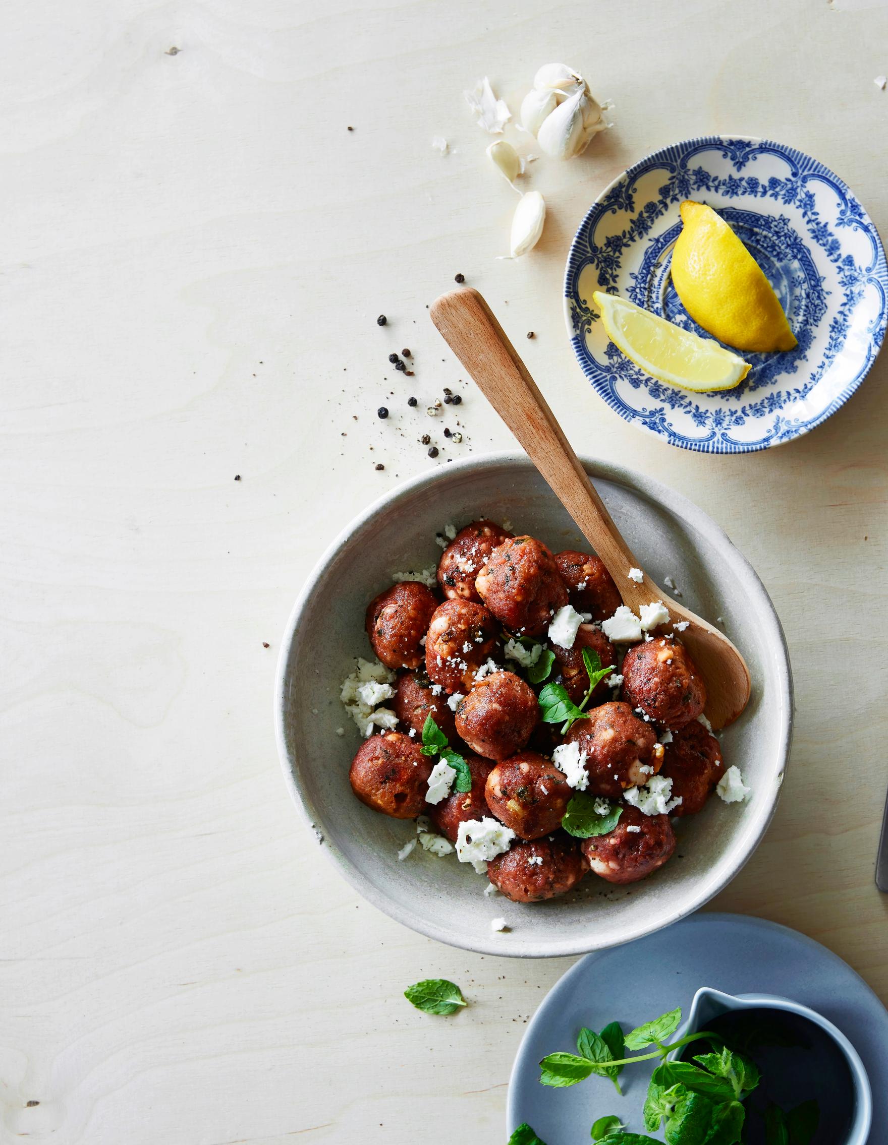 Kasvisjauhiksesta valmistettavat pyörykät lainaavat makumaailmansa Kreikasta. Mukaan murustetaan fetaa, raastetaan sitruunan kuorta ja hienonnetaan minttua. Nopeat pyörykät valmistuvat puolessa tunnissa ja kypsennetään kätevästi uunissa. Pyöryköiden paistuessa valmista kaveriksi salaatti tai keitä riisi. Nappaa kreikkalaisten pyöryköiden resepti täältä.