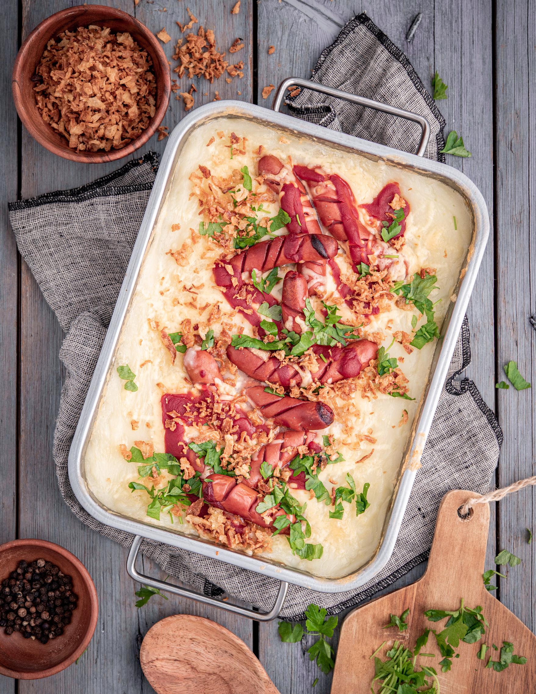 Nakit ja muusi uudella tapaa! Laiskan kokin uuninakkivuoka valmistuu hetkessä. Perunamuusi onnistuu myös uunissa, joten turhaa tiskiä ei synny. Uuninakkivuoan ohjeen saat täältä.