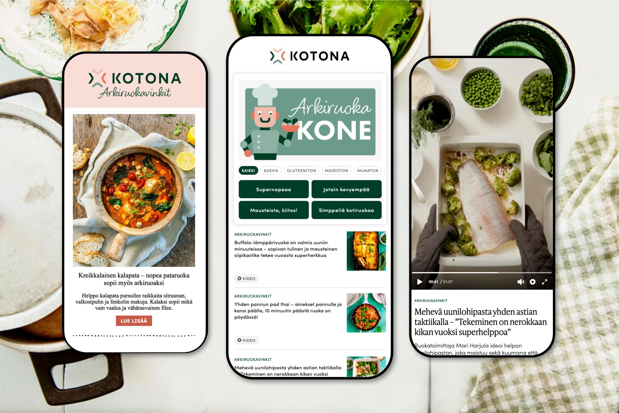 Kotona julkaisee viikoittain arkiruokavideon, jossa ruokatuottaja Mari Harjula näyttää vaihe vaiheelta, miten arkiruoat syntyvät helposti ja raaka-aineista, joita on aina saatavilla. Jokaisessa jaksossa Mari paljastaa myös käytännöllisen kikan, jolla arjen kokkaus helpottuu entisestään – kuten yhden astian uunilohipastan tai nuudeliherkun, jossa kaikki ainekset laitetaan pannulle, odotetaan kymmenen minuuttia ja ruoka on valmis. Videot tekevät reseptien seuraamisesta mutkatonta ja antavat varmuutta myös kiireisenä arki-iltana. Katso jo julkaistut niksivideot täältä!