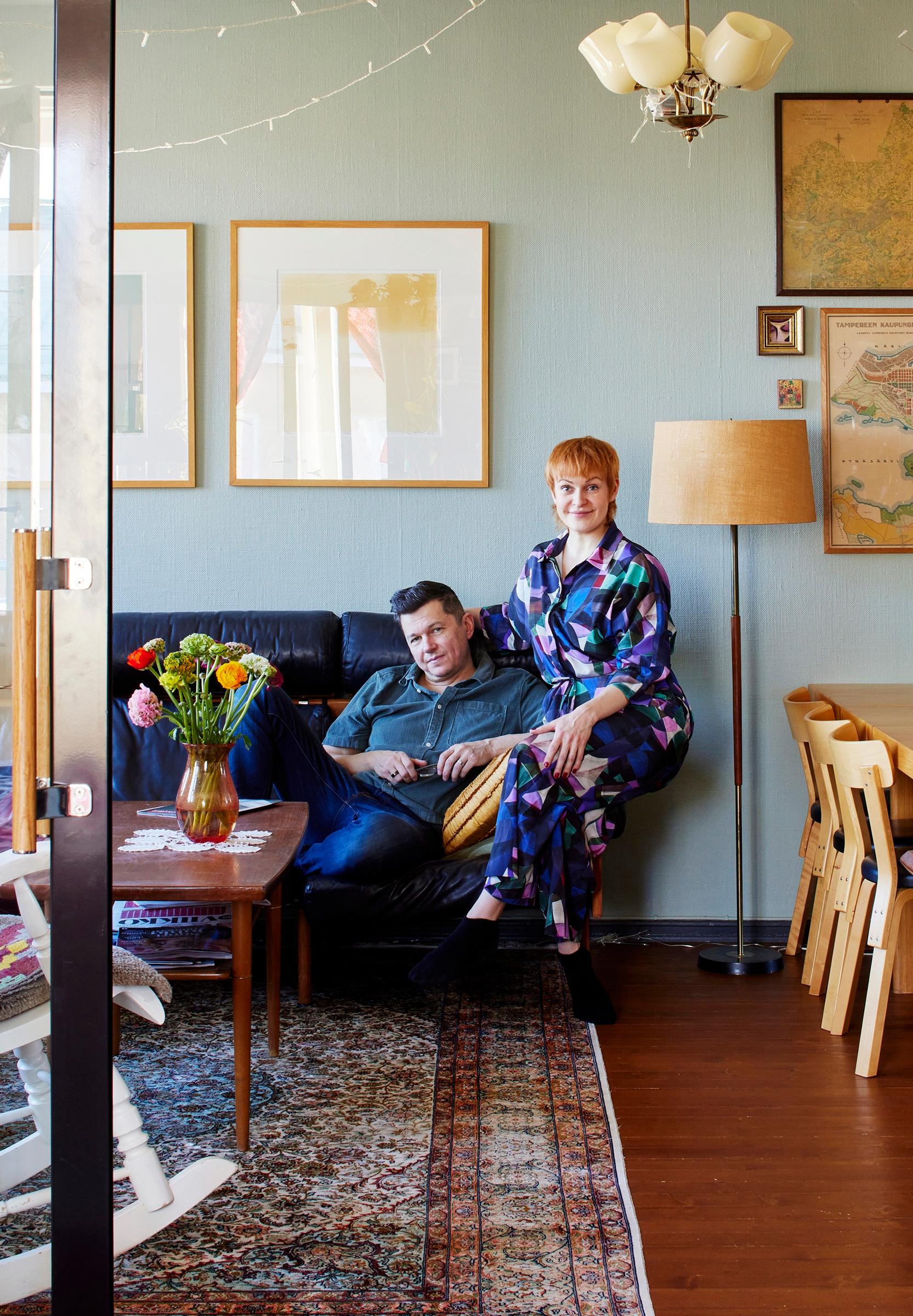 Samppa: En seuraa sisustustrendejä. Muotoilun klassikot ovat ajattomia ja hyväksi todettuja. Ne on tehty laatumateriaaleista ja niitä voi korjata. Olen perinyt sukulaisiltani Artekia sekä valaisimia, mutta hauskinta on löytää kirpputorilta jonkun tuntemattoman suunnittelijan kaluste, joka sujahtaa klassikkojen sekaan.