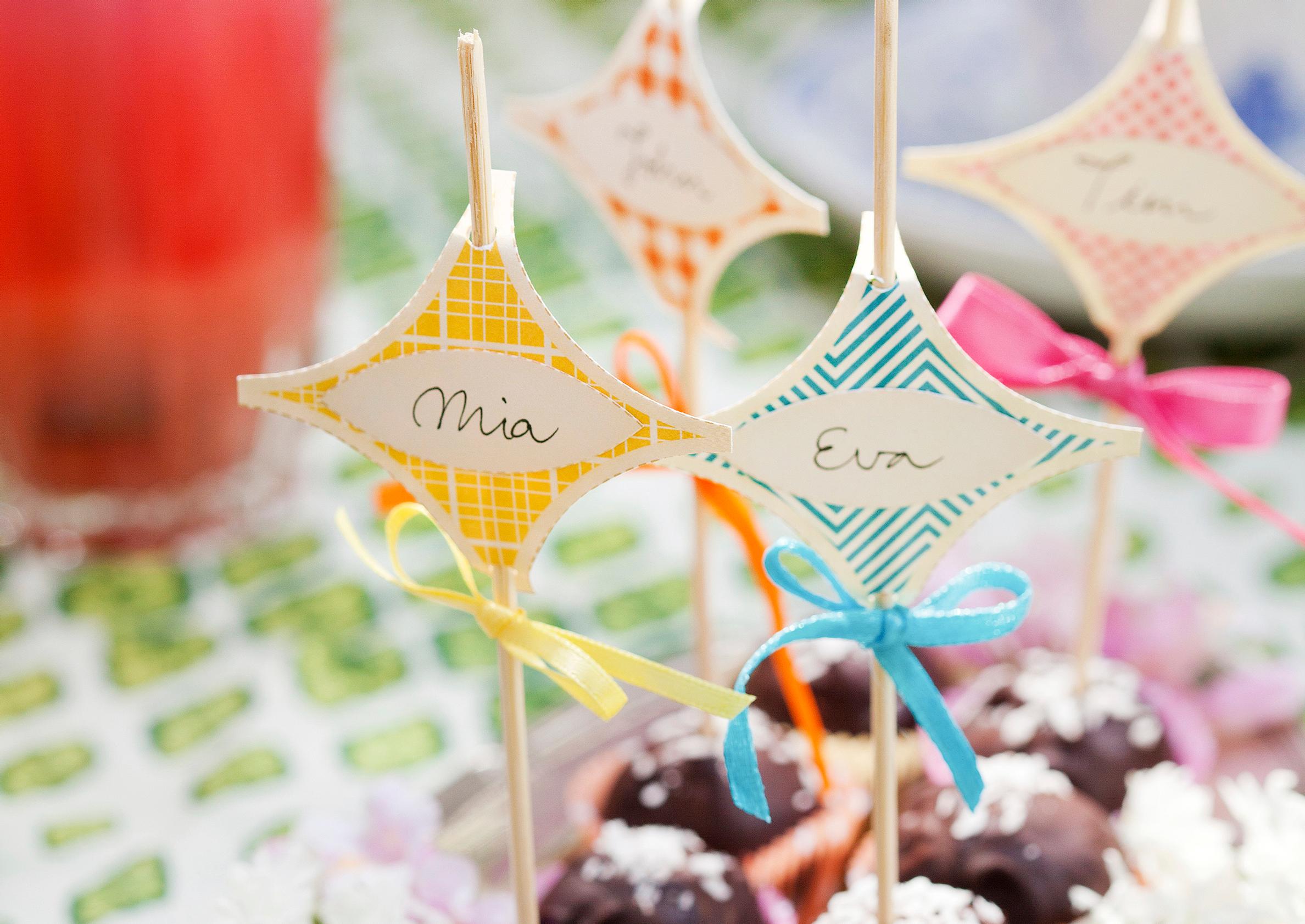 Grillitikkuihin kiinnitetyt paikkakortit voi tuikata pystyyn vaikka muffineihin.