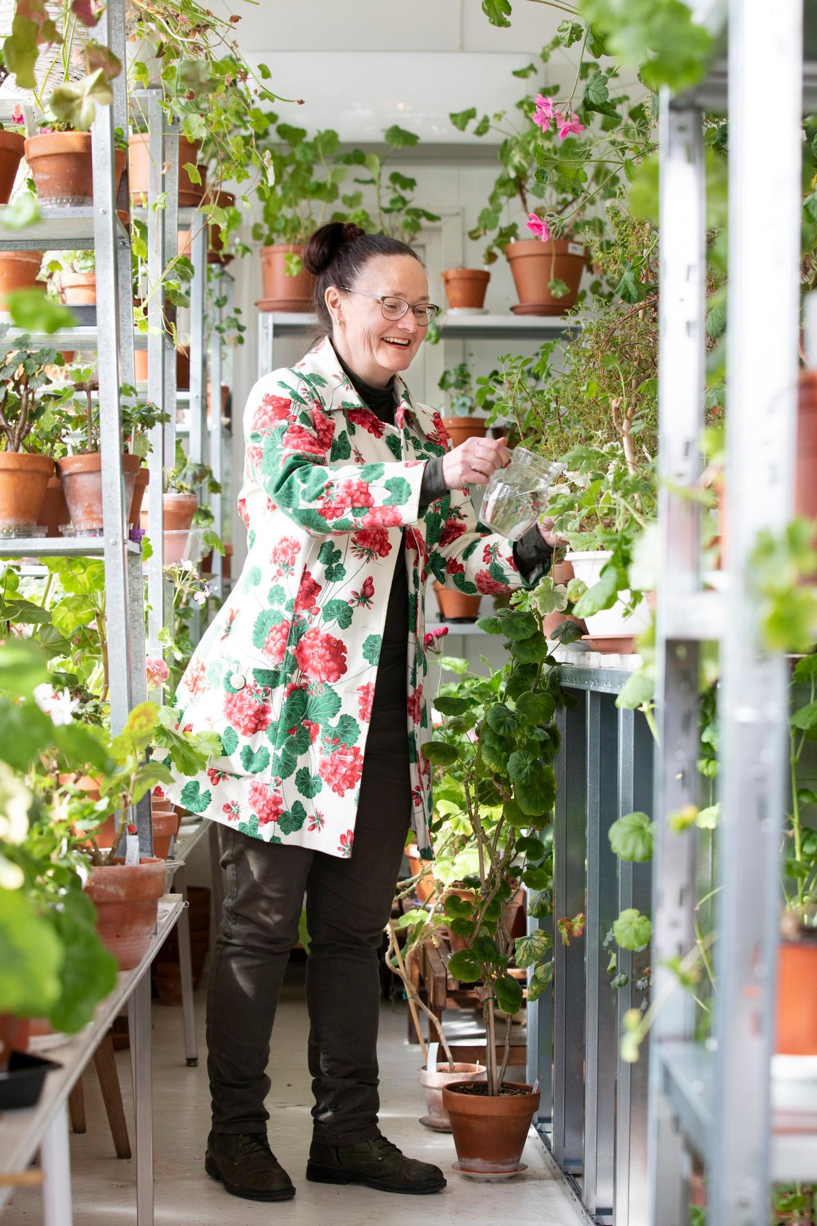 – Ne ovat niitä kaikkein perinteisimpiä pelargoneja, joiden lehdissä on usein tummempi vyöhyke ja piparkakkureunat. Vähitellen pelargonit veivät minut mukanaan. Olen harrastanut niitä jo kohta kolme vuosikymmentä. Opiskelin puutarhuriksikin niiden innoittamana. Nykyään myös kaikki huonekasvini ovat pelargoneja.
