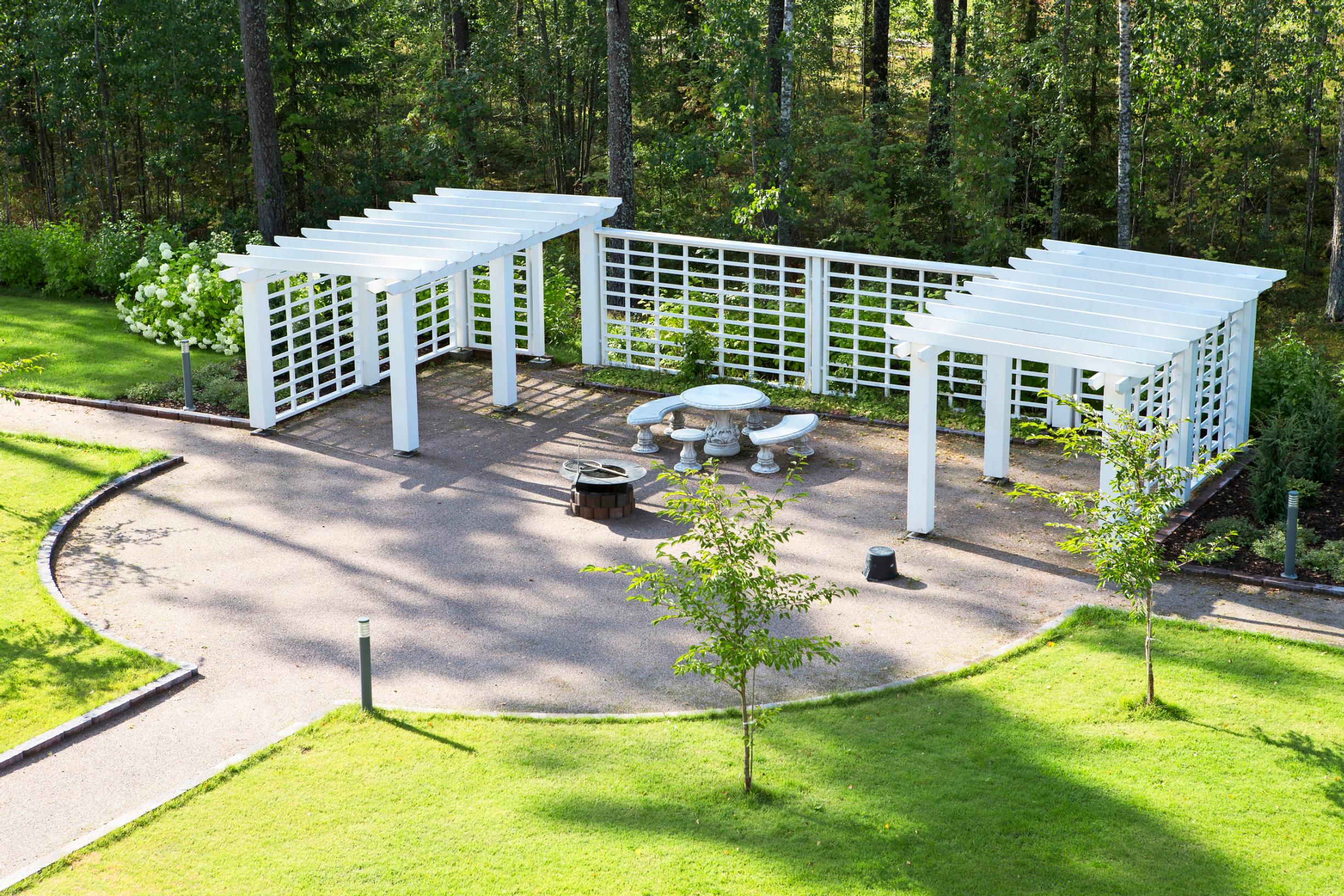 – Piha-alueen pergola-grillipaikkaa hyödynnetään etenkin keväisin ja syksyisin omissa pihatalkoissamme. Sen jälkeen mennään entiseen pannuhuoneeseen tehtyyn sauna- ja poreammetilaan, Matti kertoo.