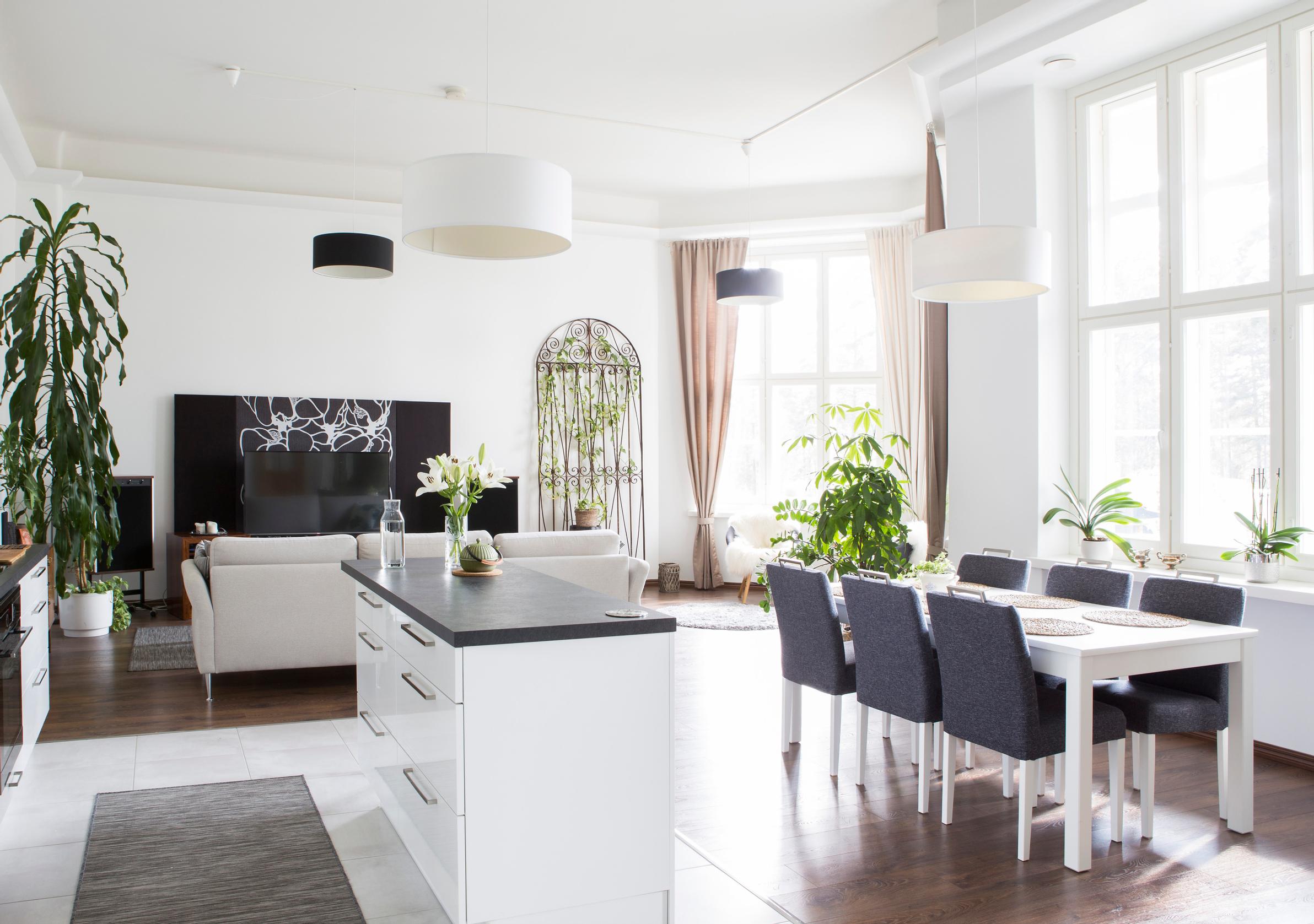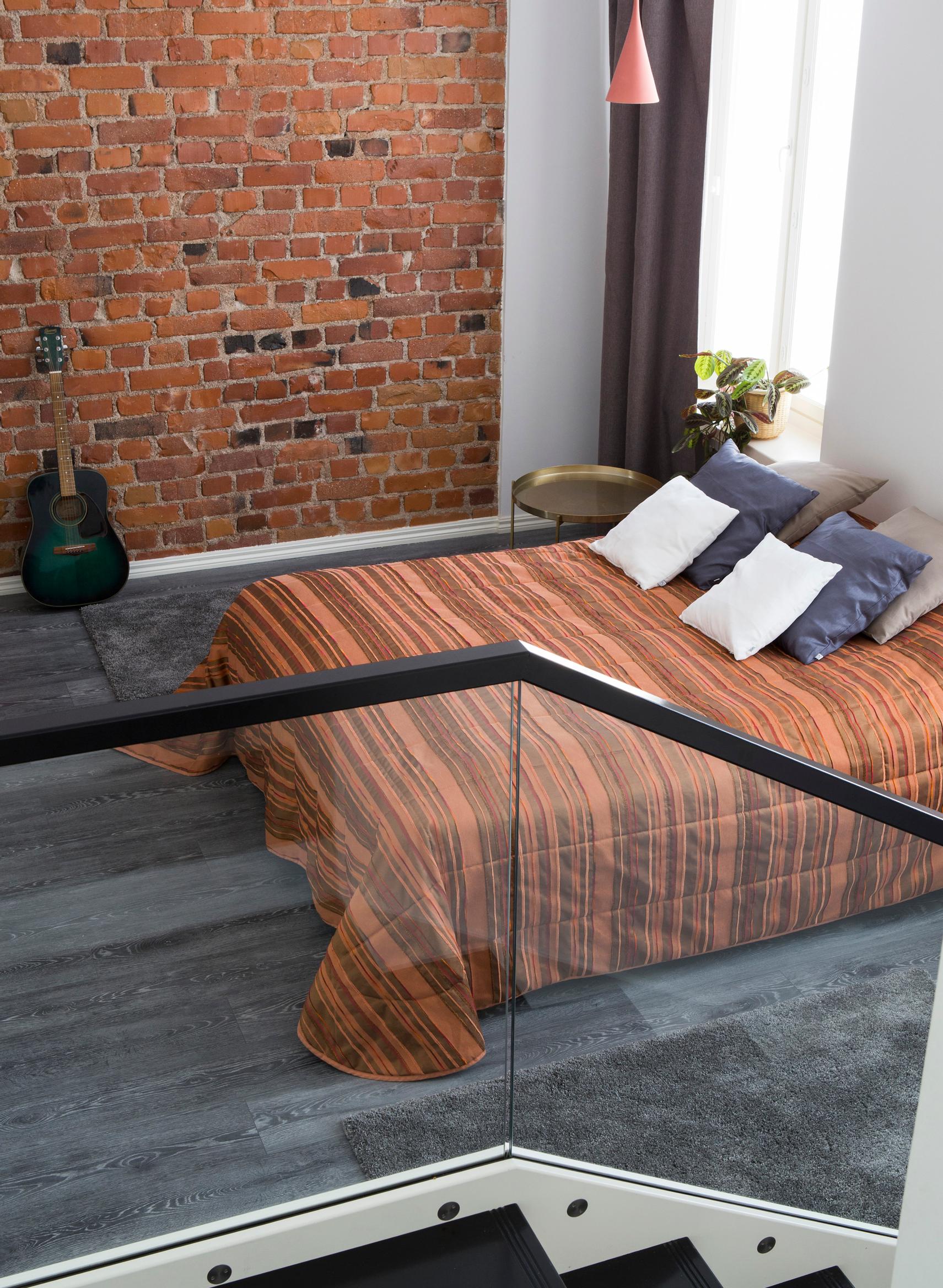 – Suurien ja näyttävien pintojen materiaaleiksi valittiin laadukkaita ja aikaa kestäviä materiaaleja. Loft-henkisissä asunnoissa näkymät jatkuvat tilasta toiseen, joten on hyvä, että eri tilojen värit sointuvat toisiinsa. Näihin asuntoihin ei sovi mikään pikkusievä sisustustyyli, Maija-Riitta kertoo.