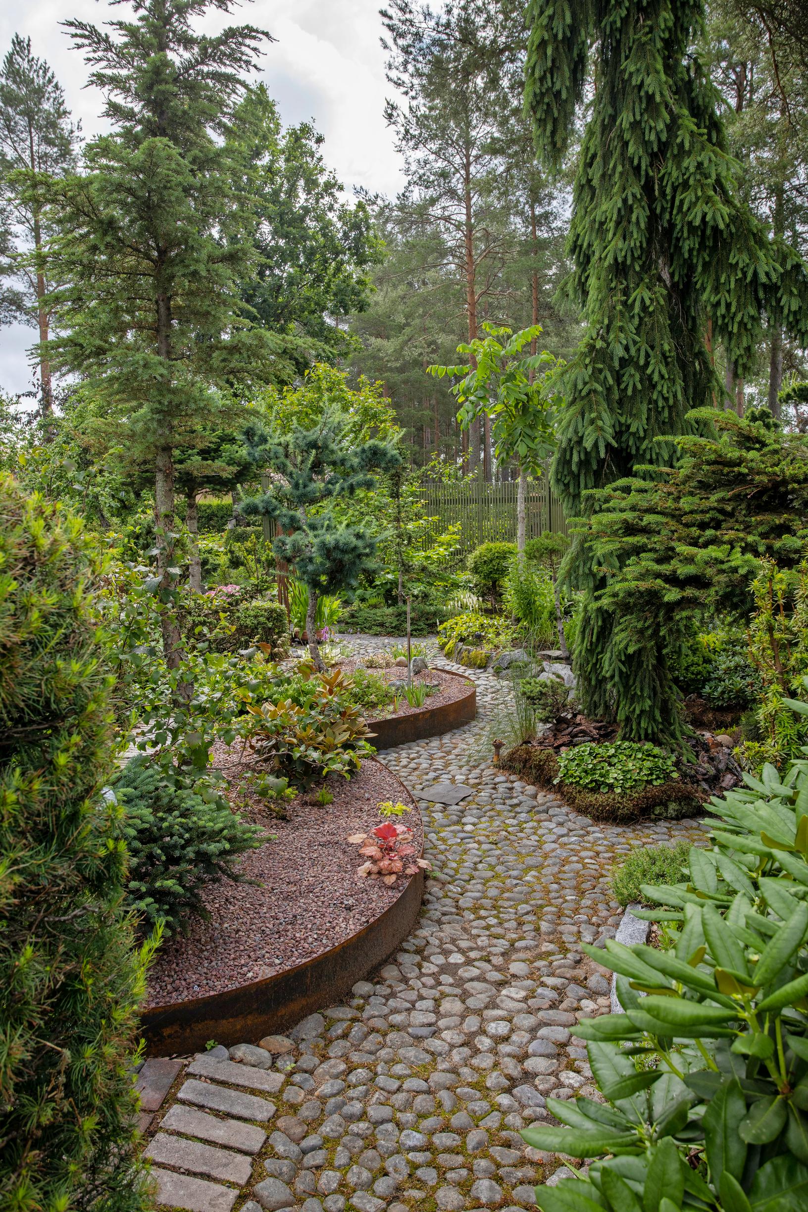 Kaikkiaan kasveja on parisen tuhatta. Osan niistä Barbro on kylvänyt itse, kuten erilaisia keväällä kukkivia sinivuokkoja. Alkuun kasvit ylipäänsä olivat hänelle kaikki kaikessa, mutta vuosien mittaan hän on hionut niiden yhdistelemisen huippuunsa. Kasvutavat, korkeudet, lehtisävyt ja muut kasvien ominaisuudet vaihtelevat aistikkaasti. Lukuisat havukasvit tuovat kokonaisuuteen lisää vivahteita.