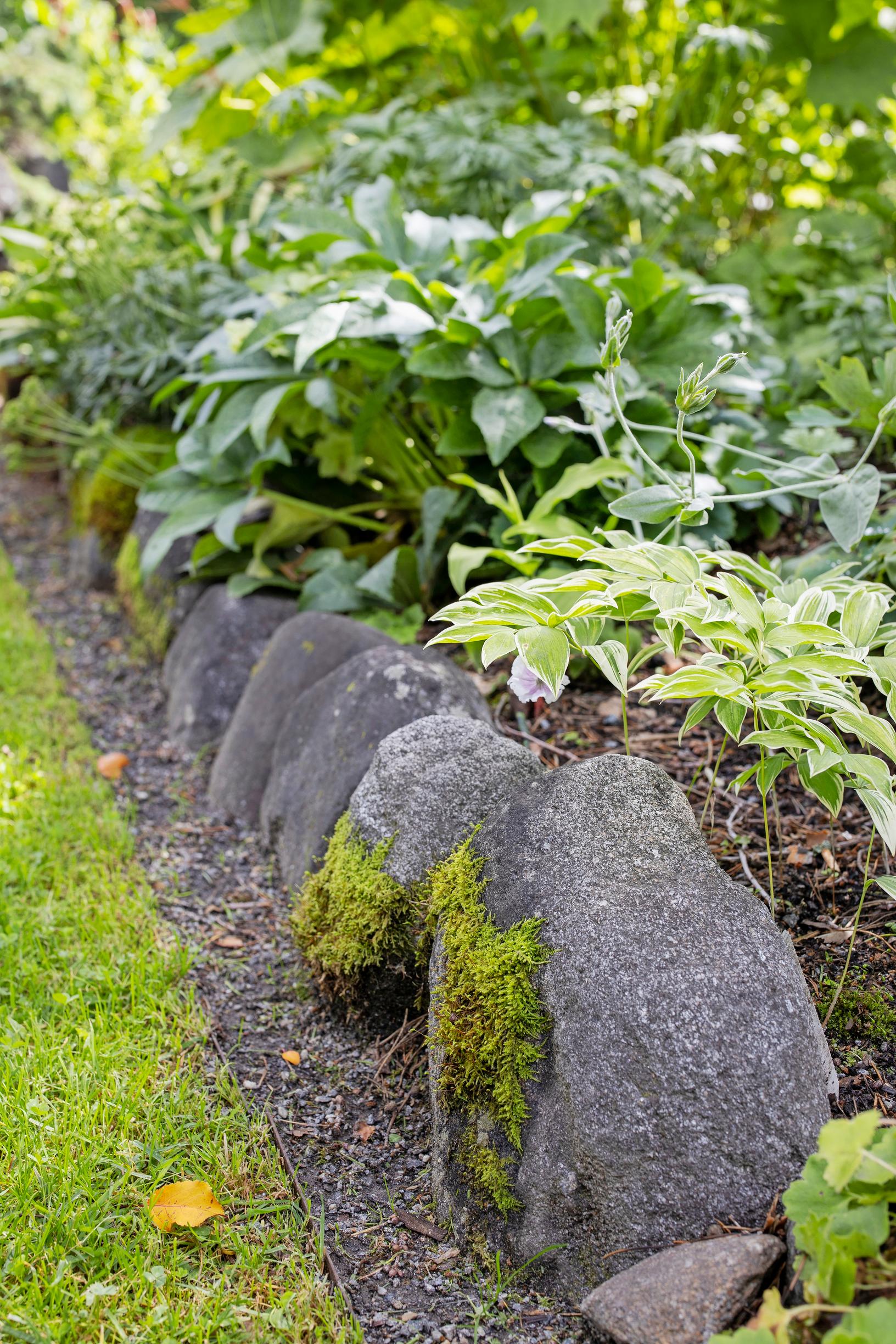 – On olemassa vaikka mitä hienoja pohjoisen kasveja. Puitakin, kuten vaikkapa mukuraharmaaleppä tai punakoivu. Suuri osa perennoista pärjää täällä ihan hyvin, ja kivet nyt ainakin. Rakastan myös niitä, hän lisää nauraen.